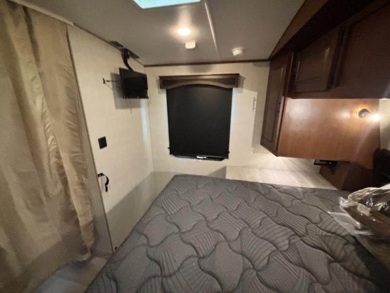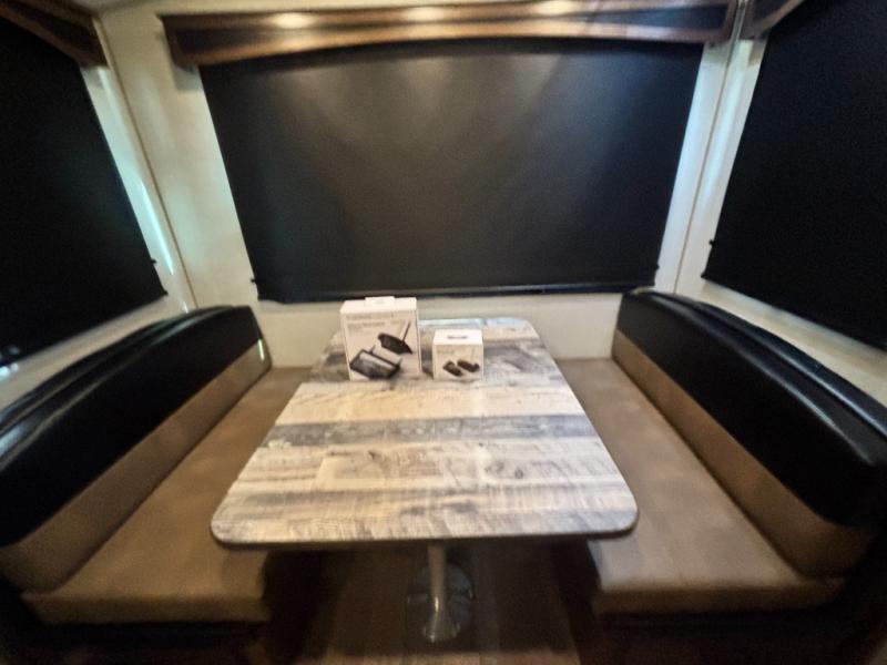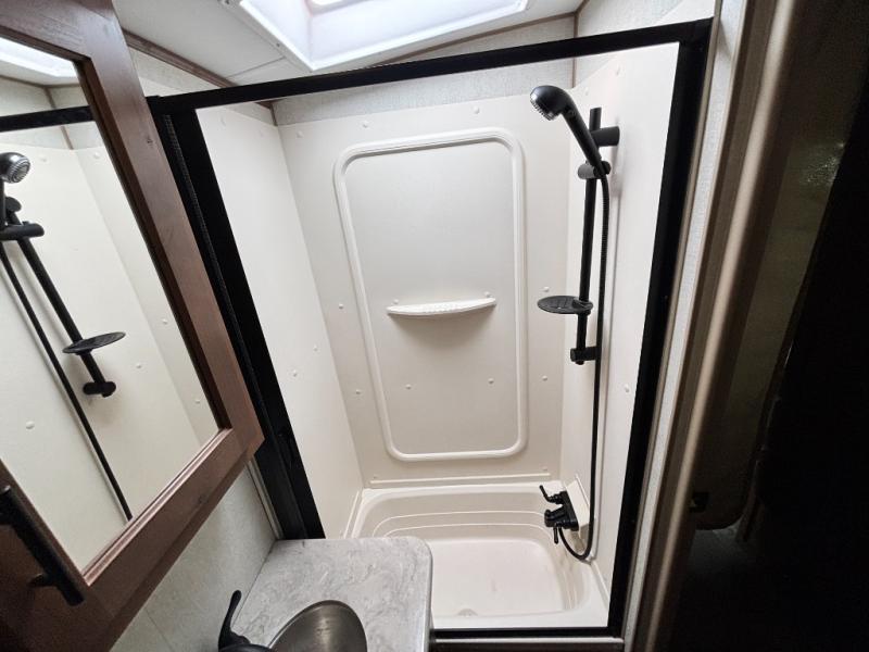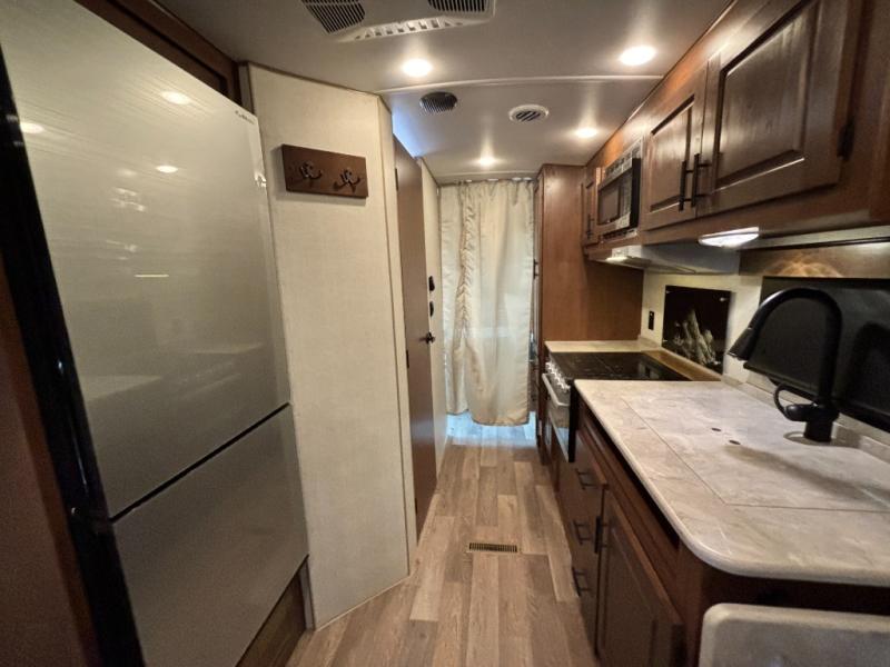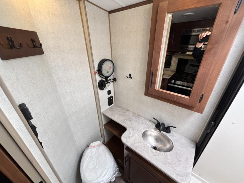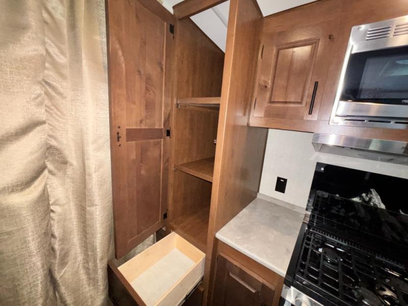 Load up your gear, clothing and food to start your journey exploring for the perfect spot to setup camp with this Back Country. You and your traveling companion will love the queen bed up front with a privacy curtain, plus there is storage on each side. If you are a family, one to two kiddos can sleep on the rear 45" x 84" mountain dinette that offers beautiful views out of the windows. The kitchen offers everything to keep everyone fed including a flip-up counter for extra work space. There is a full bathroom to keep everyone clean, plus a swing-out 32" TV for inside entertainment. And don't forget about the 17' awning when you want to relax outside with some protection from the sun.