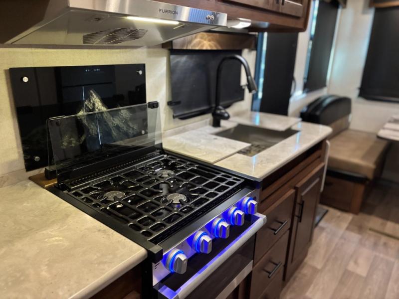 Each Back Country MTN TRX Titanium Series travel trailer by Outdoors RV is designed for camping off-grid plus you can go off-road, camp in national forest or even enjoy primitive style camping! There is a Lamilux HD 4000 high-gloss silver fiberglass exterior, sleek design frameless thermal pane windows, and a silver fiberglass front cap that gives these units a premium trim! You will also appreciate the Ground Control auto leveling and the wireless rear and side(s) turn camera system for hassle-free parking! The Mountain Lodge interior features hardwood throughout and all-leather designs, plus there are LG solid surface countertops, a premium memory foam mattress, and an upgraded shower head to name a few comforts!