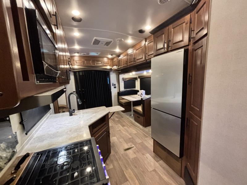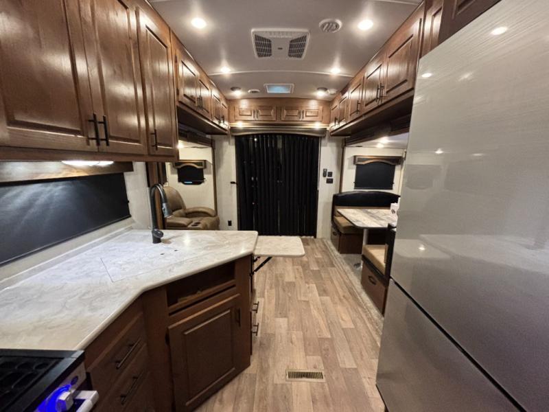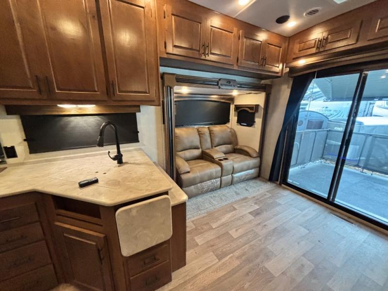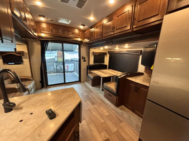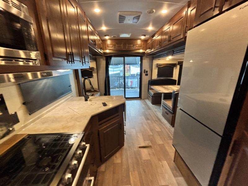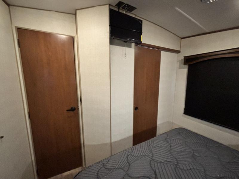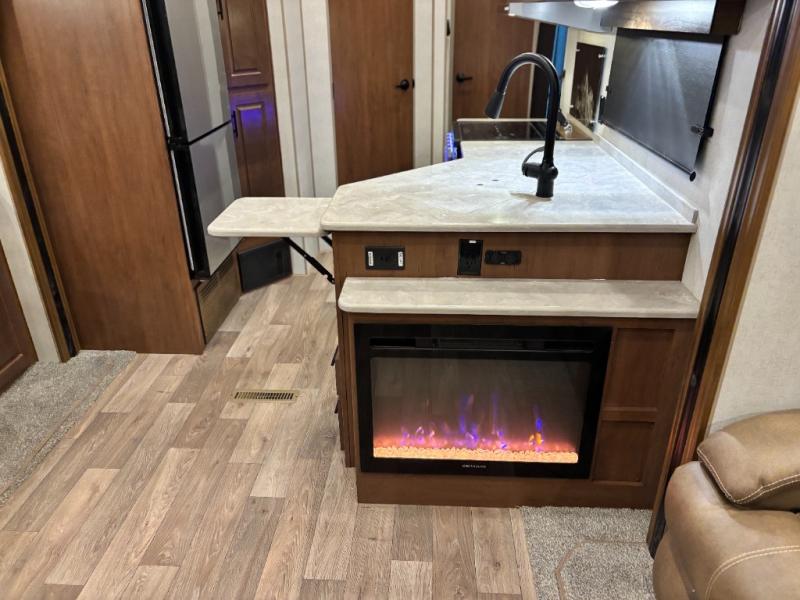 You'll love every minute spent in this cozy travel trailer. There is a rear patio deck with a rail system and stairs, along with a residential sliding glass door that leads to the rear living area. Your crew can play a game at the booth dinette or relax on the residential sofa with built-in recliners. If you're needing more sleeping space, just choose the optional sleeper sofa in place of the standard sofa. There are even optional TRX recliners if want that option as well! The fully-equipped kitchen includes everything you need to make meals each day, plus a 12V refrigerator and pantry for food storage. The flip-up counter will also come in handy when you need extra counter space. Head up front to find the dual entry bath and front master bedroom with a queen bed!