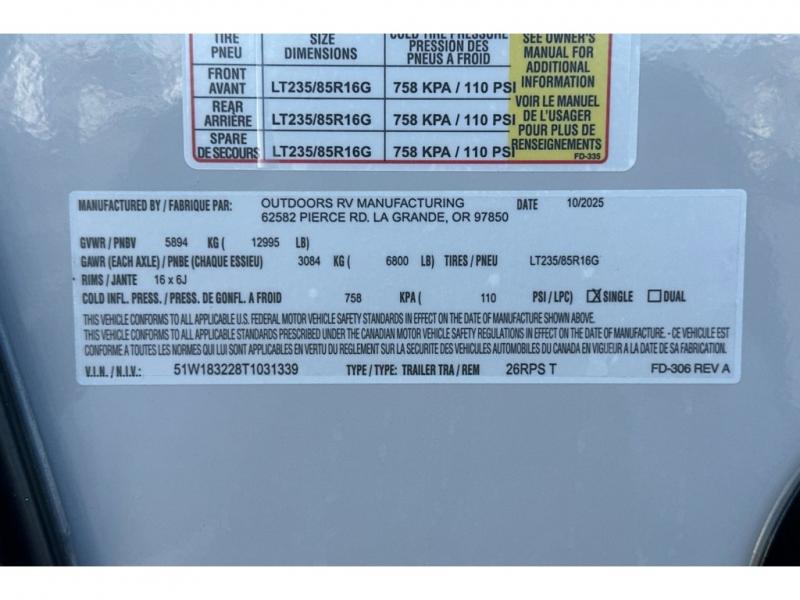 Outdoors RV Back Country Series MTN TRX Titanium Series travel trailer 26RPS highlights: