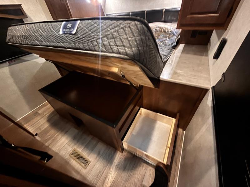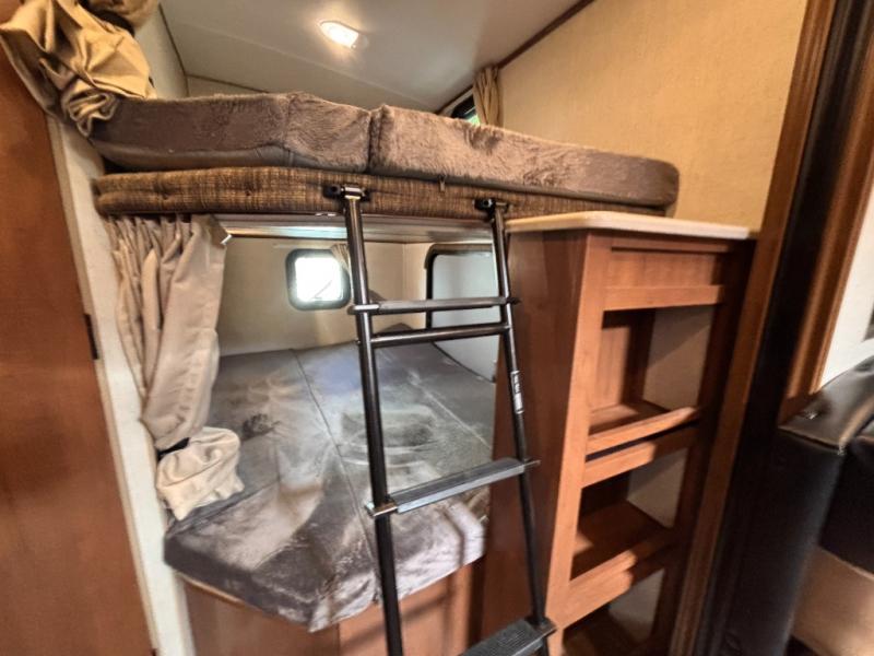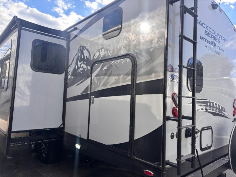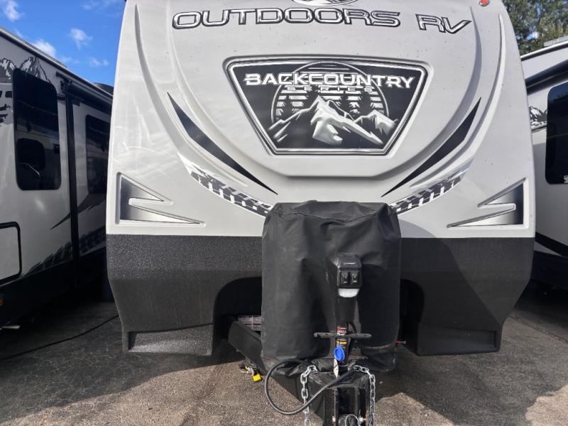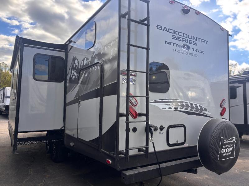Outdoor enthusiasts love this Back Country for many reasons when they camp at local campgrounds, state parks, and off-grid! The handy garage storage door allows you to place items from the exterior into the interior for safe travels under the bunks. The double-size bunks and ladder allow four to sleep each night, the mountain dinette and sleeper sofa offer three to four more spaces, and the owners will enjoy their own queen bed in the front private bedroom. The kitchen offers full amenities, the swing-out 40" TV offers inside entertainment, and the full bathroom will keep everyone clean after a fun day outdoors. There is more, step inside to see it all!