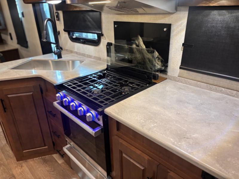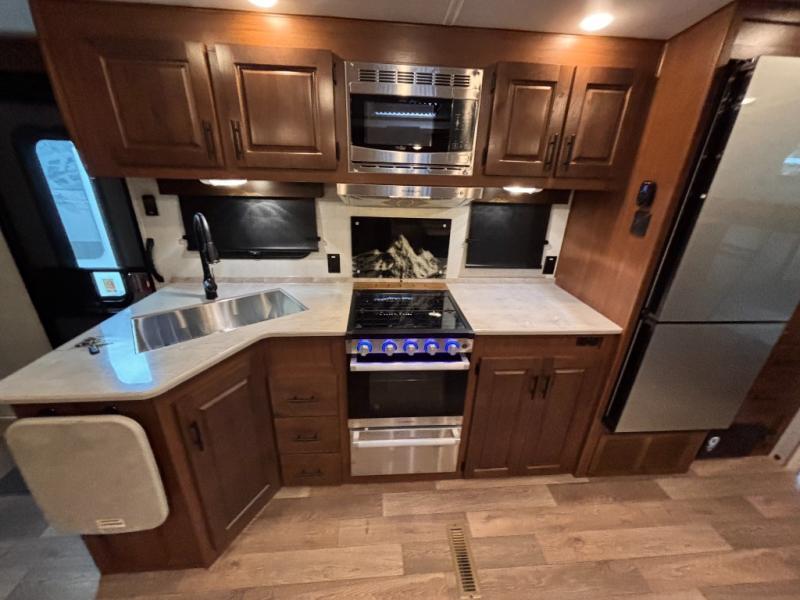 Each Back Country MTN TRX Titanium Series travel trailer by Outdoors RV is designed for camping off-grid plus you can go off-road, camp in national forest or even enjoy primitive style camping! There is a Lamilux HD 4000 high-gloss silver fiberglass exterior, sleek design frameless thermal pane windows, and a silver fiberglass front cap that gives these units a premium trim! You will also appreciate the Ground Control auto leveling and the wireless rear and side(s) turn camera system for hassle-free parking! The Mountain Lodge interior features hardwood throughout and all-leather designs, plus there are LG solid surface countertops, a premium memory foam mattress, and an upgraded shower head to name a few comforts!