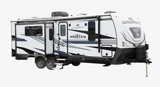 With any Black Stone Mountain Series travel trailer by Outdoors RV, you will enjoy climate designed four seasons camping thanks to the thermal pane windows and unique heated, insulated holding tank design. The custom-built chassis and rugged integrated A-frame are built for strength and durability, along with the rugged 2" bonded aluminum frame walls. Each model includes LG solid surface countertops, granite designed backsplash, vaulted radius ceilings, and a mountain comfort premium mattress for all-around comfort. You will also love the XL panoramic slide out windows and the dual pane living room skylight with a shade to let natural light in!