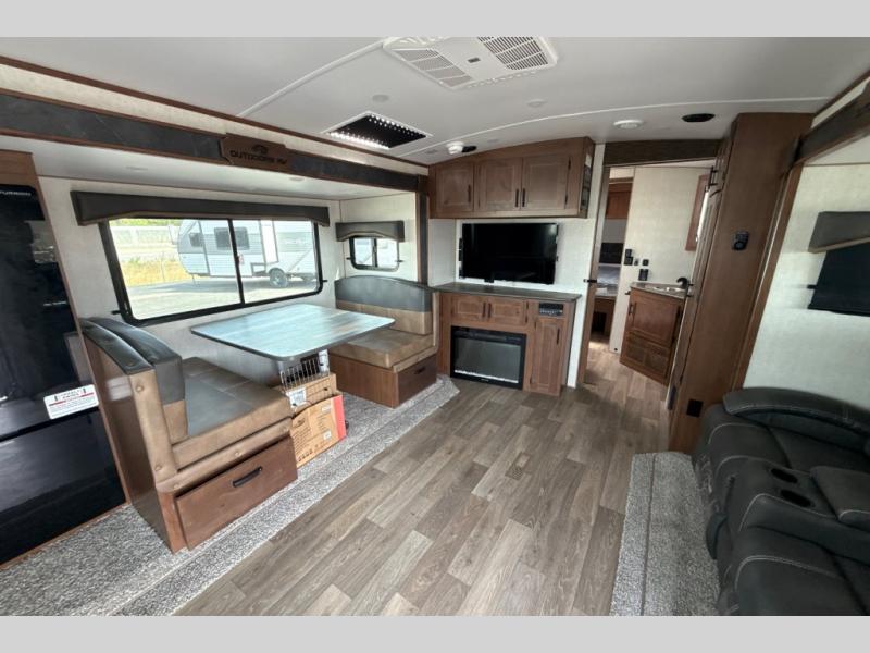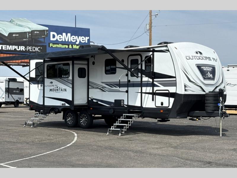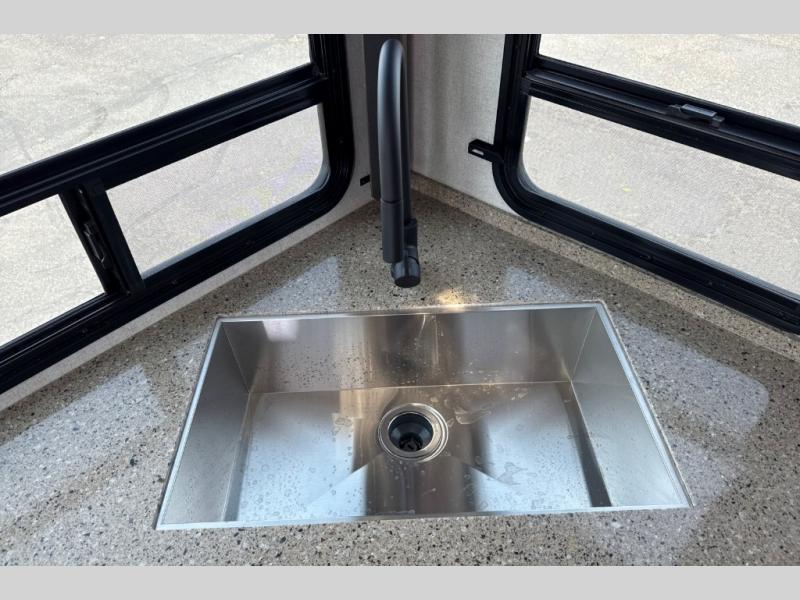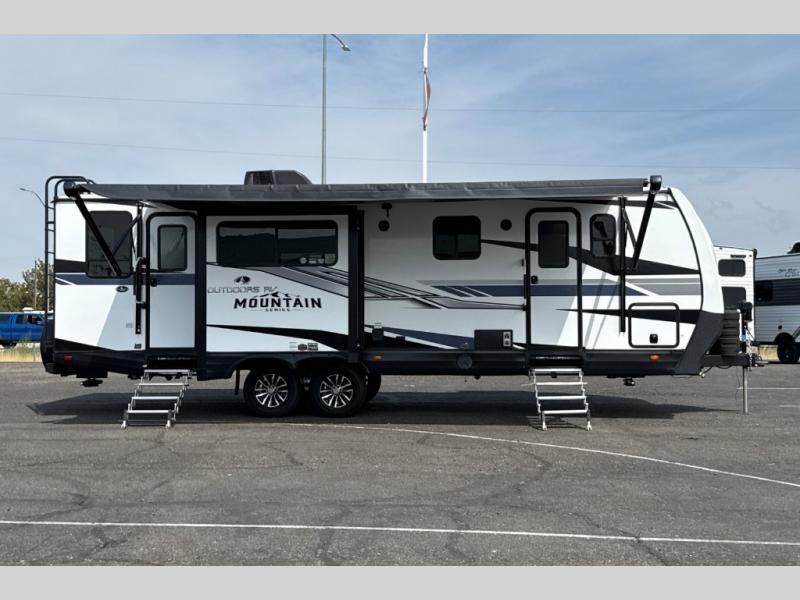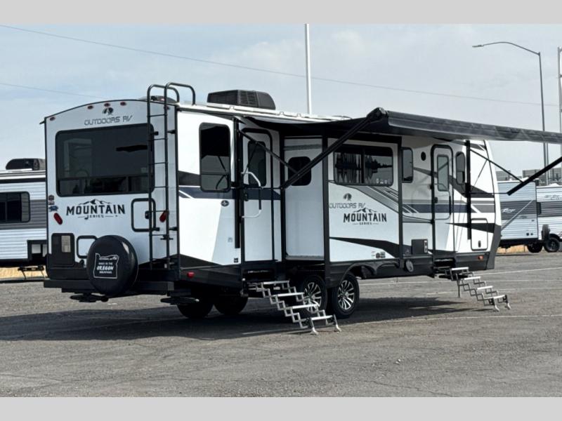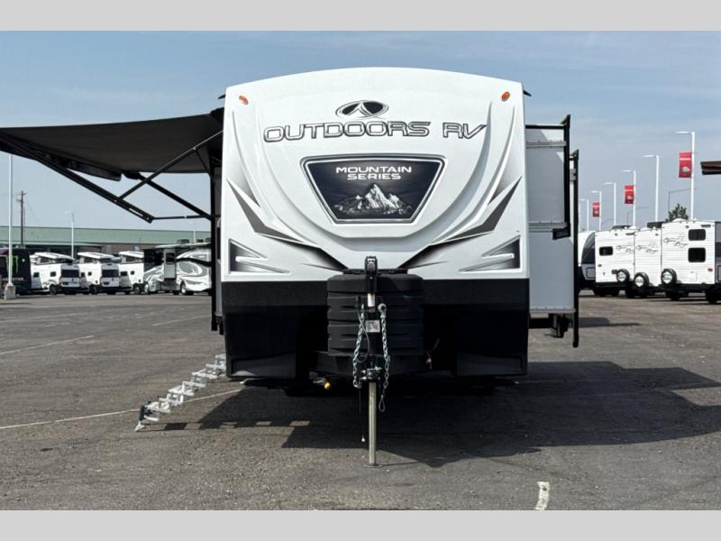 With any Black Stone Mountain Series travel trailer by Outdoors RV you will enjoy climate designed four seasons camping thanks to the thermal pane windows and the fully enclosed, heated, and insulated underbelly. The custom built chassis and rugged integrated A-frame are built for strength and durability, along with the rugged 2" bonded aluminum frame walls. Each model includes LG solid surface countertops, granite designed backsplash, vaulted radius ceilings, and a mountain comfort premium mattress for all-around comfort. You will also love the XL panoramic slide out windows and the dual pane living room skylight with a shade to let natural light in!