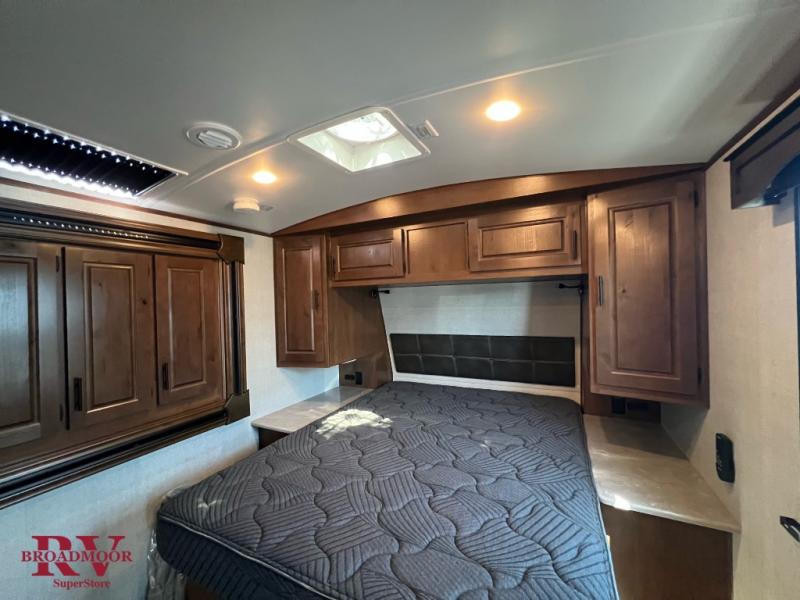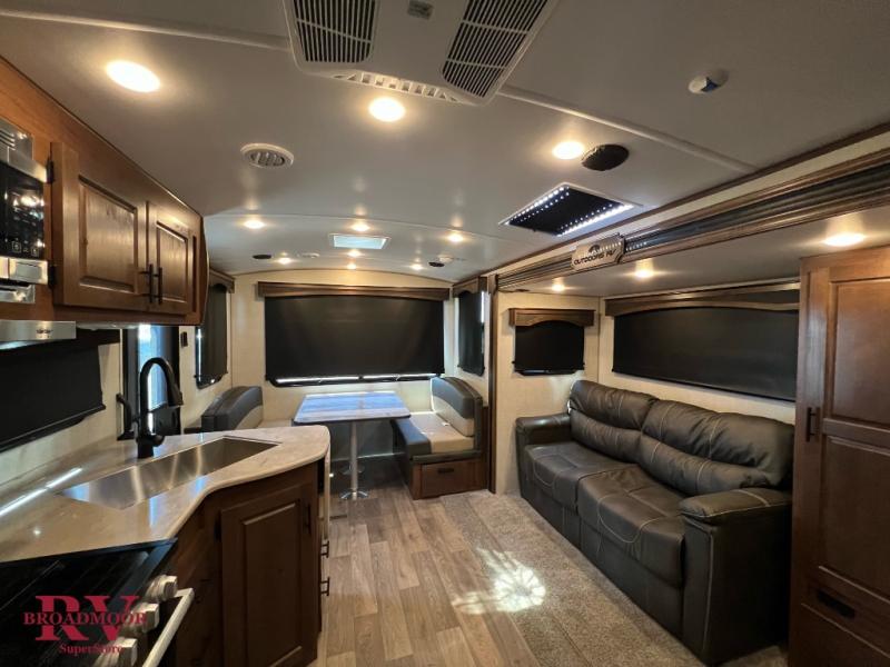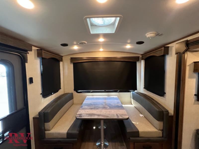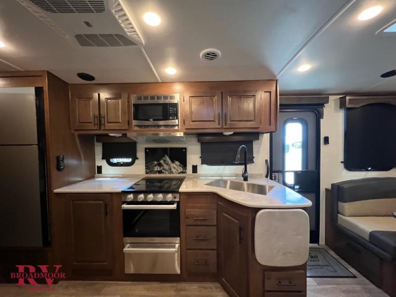 This dual entry travel trailer will be perfect for your trips to the mountains. The rear mountain dinette includes a large window for outdoor views, and you'll find additional seating space on the sleeper sofa. The chef of your group can work up their magic in the full kitchen that includes a sunken range and a flip-up counter for more counter space. Within the front private bedroom you'll find a queen bed, wardrobes on either side of the bed, plus a wardrobe slide for more space and storage.