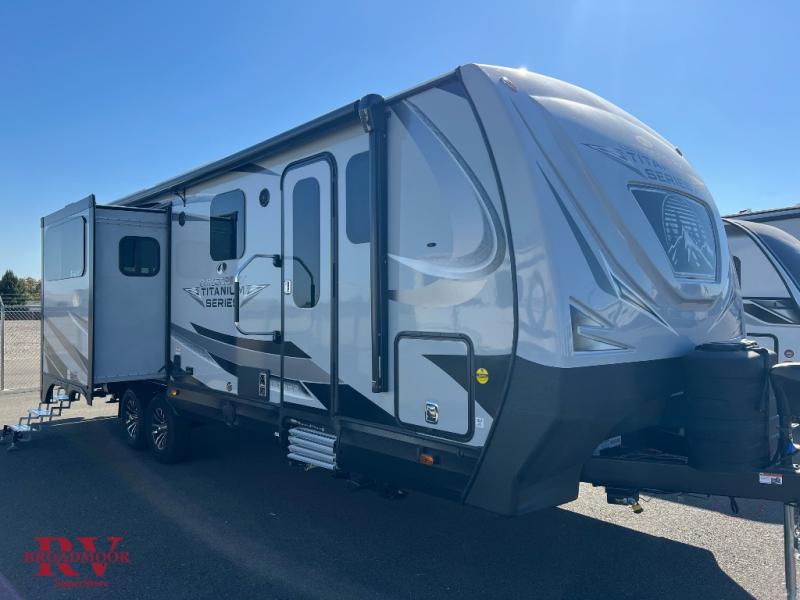 With any Black Stone Titanium Series travel trailer by Outdoors RV you will enjoy the sleek design frameless thermal pane windows, along with the silver fiberglass front cap and Titanium Series graphics package. The rugged 8' chassis with 5,200 lb. axles and XL ground clearance will make maneuvering tougher terrain easier than ever, and there is a ground control TT auto leveling system for hassle-free set-up. Each model includes LG solid surface countertops, mountain lodge interiors, hardwood slide out fascia(s), and many more comforts!