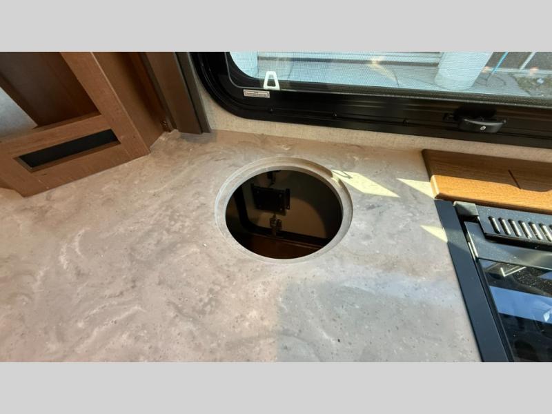 With any Black Stone Mountain Series travel trailer by Outdoors RV, you will enjoy climate designed four seasons camping thanks to the thermal pane windows and unique heated, insulated holding tank design. The custom-built chassis and rugged integrated A-frame are built for strength and durability, along with the rugged 2" bonded aluminum frame walls. Each model includes LG solid surface countertops, granite designed backsplash, vaulted radius ceilings, and a mountain comfort premium mattress for all-around comfort. You will also love the XL panoramic slide out windows and the dual pane living room skylight with a shade to let natural light in!