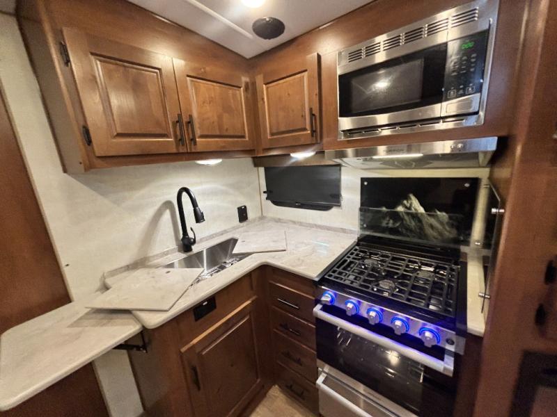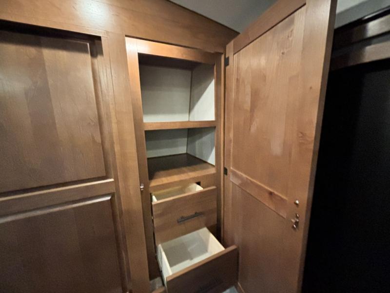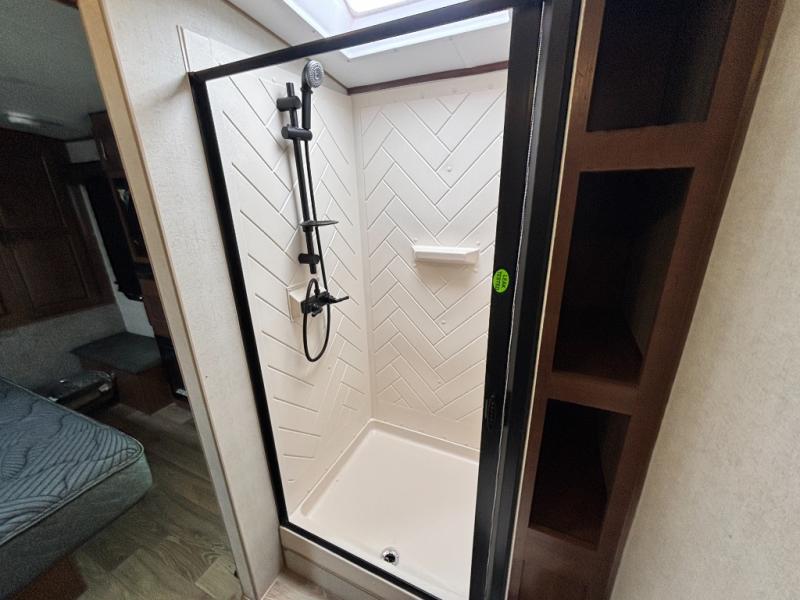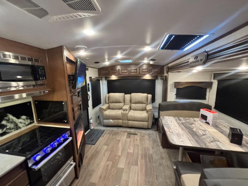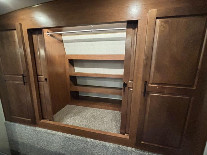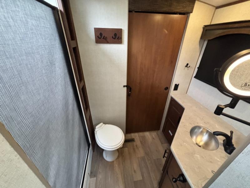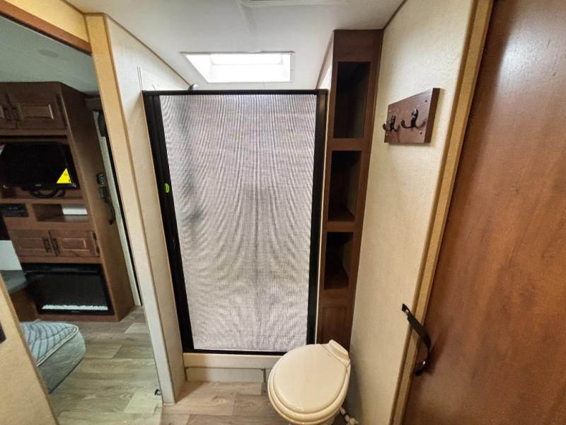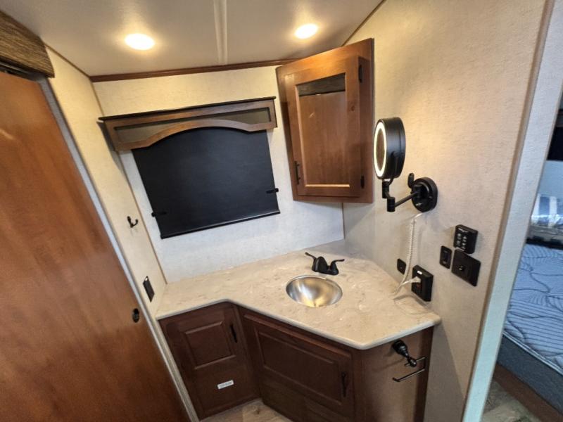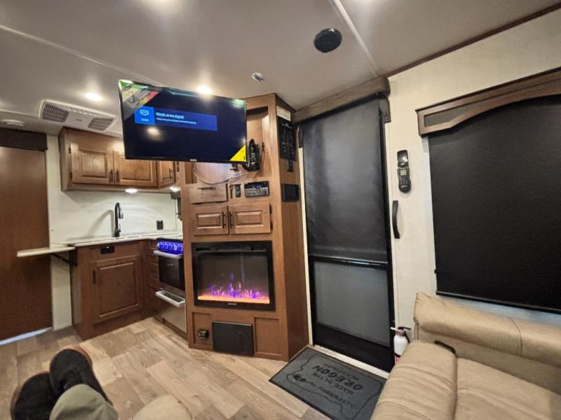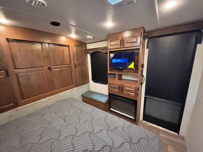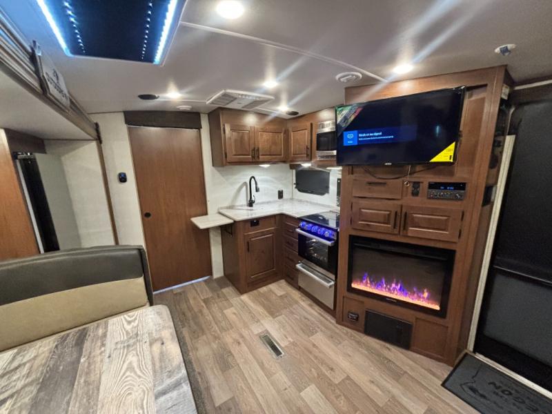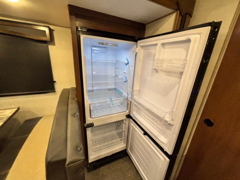 You'll love every minute spent in this dual entry travel trailer! If you enter in through the front master bedroom, you'll find a queen bed slide, a large front closet, and a bench/hamper. A walk-thru bath will take you to the combined kitchen and living area where you'll find the second entry door, dual recliners, and mountain dinette slide. And don't overlook the full kitchen, complete with a sunken range with a glass front, a flip-up counter, a pantry, plus more!