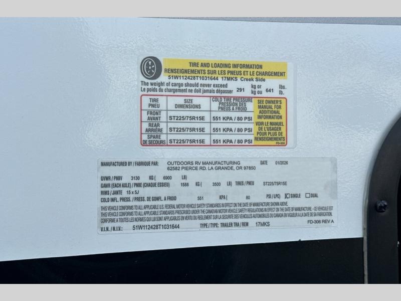 New 2026 Outdoors RV Creek Side Mountain Series 17MKS Travel Trailer