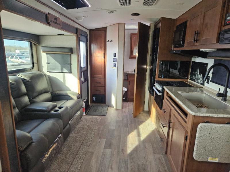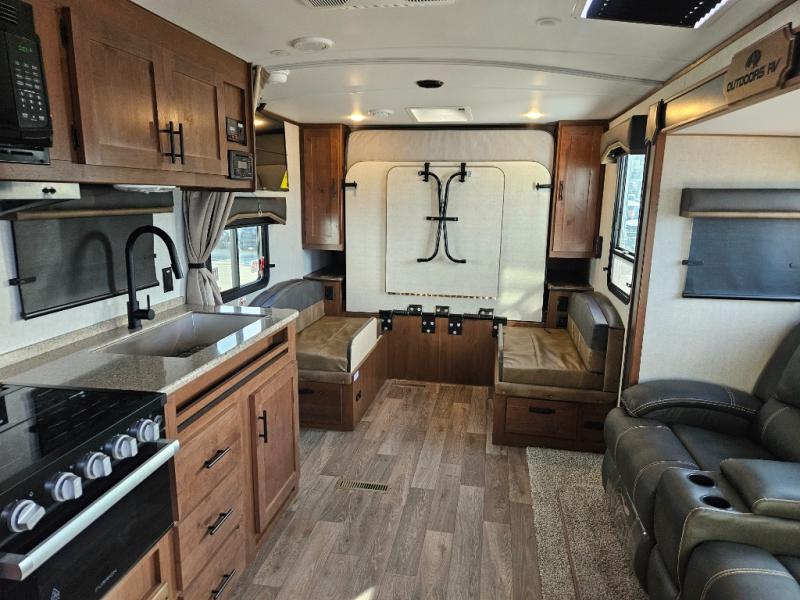 Each Creek Side Mountain Series travel trailer by Outdoors RV is designed for mountain tough four seasons camping for all your adventures. You'll find mountain extreme thermal pane windows, triple layered four seasons roof insulation, and a unique heated, insulated holding tank design. The compact design is compatible for light duty tow vehicles and smaller campsites, so you may not even need to purchase a new vehicle to start camping. Each model includes LG solid surface countertops, ultra leather furniture, and XL panoramic slide out windows for great outdoor views. These travel trailers also feature a mountain comfort premium mattress, 12V USB ports on either side of the bed, and drawers under the bed for convenient storage.