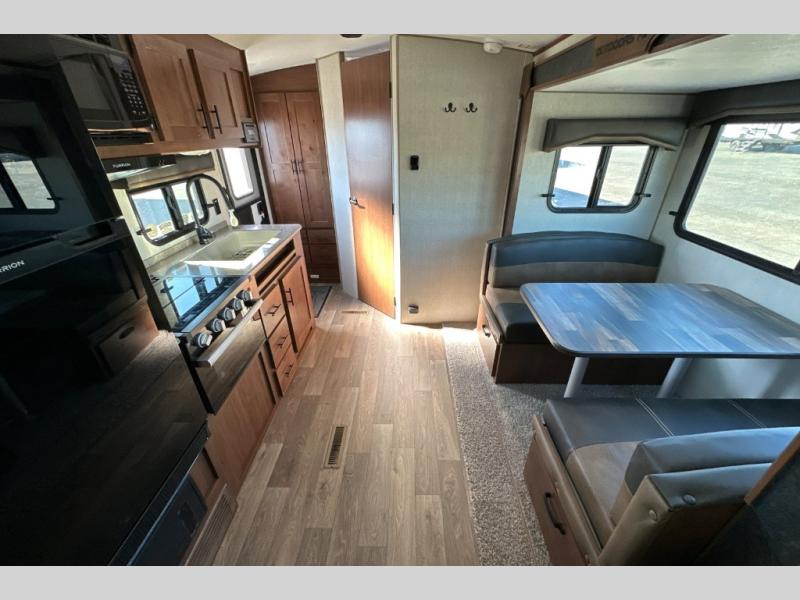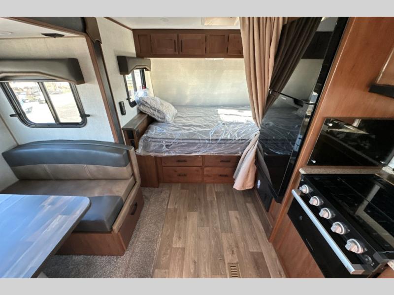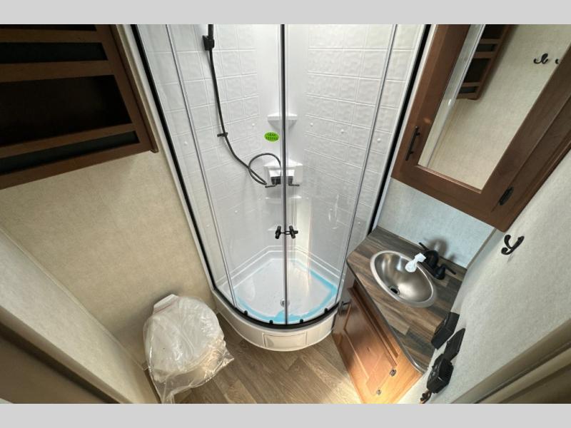 This is the shortest model in the Creek Side Mountain Series lineup, coming in at only 21' 10" in length for easy maneuvering in and out of campgrounds! The full kitchen with a sunken range and 12V refrigerator will let you cook and store food, and the dinette slide provides a place to dine together. You will appreciate having a full bath on board so you won't have to leave your camper in the middle of the night, and the front queen bed will make you feel right at home!