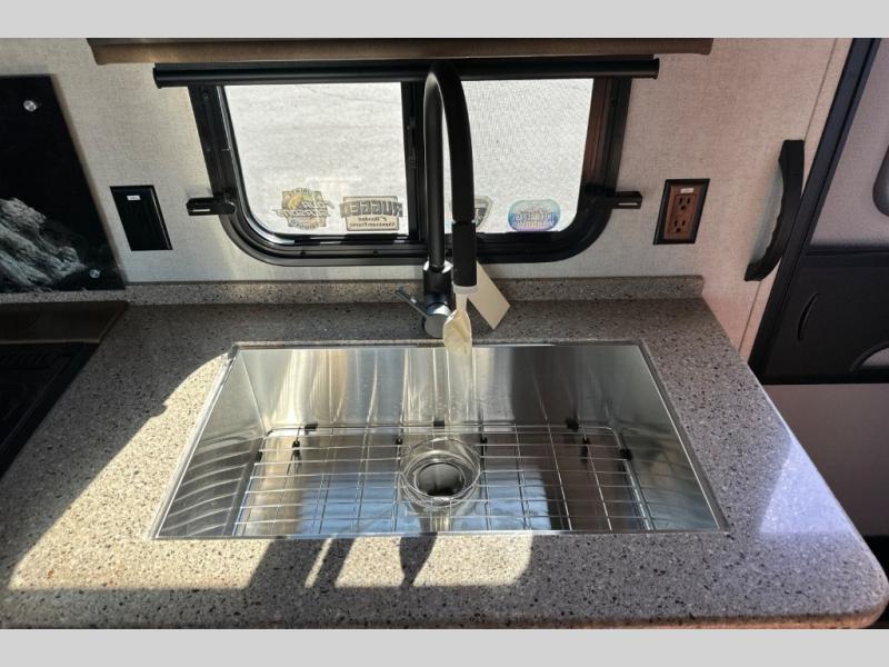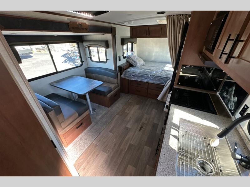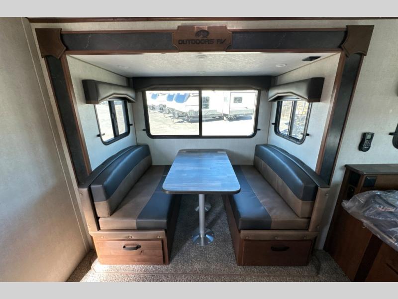 Each Creek Side Mountain Series travel trailer by Outdoors RV is designed for mountain tough four seasons camping for all your adventures. You'll find mountain extreme thermal pane windows, triple layered four seasons roof insulation, and a unique heated, insulated holding tank design. The compact design is compatible for light duty tow vehicles and smaller campsites, so you may not even need to purchase a new vehicle to start camping. Each model includes LG solid surface countertops, ultra leather furniture, and XL panoramic slide out windows for great outdoor views. These travel trailers also feature a mountain comfort premium mattress, 12V USB ports on either side of the bed, and drawers under the bed for convenient storage.