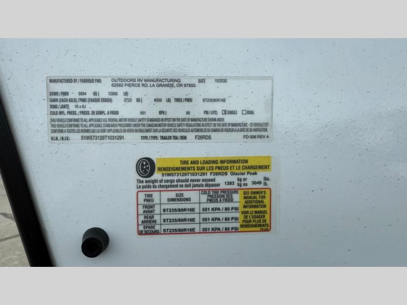 New 2026 Outdoors RV Glacier Peak Mountain Series F26RDS Fifth Wheel