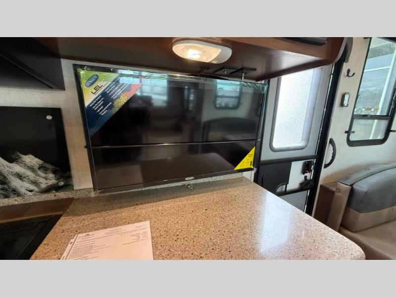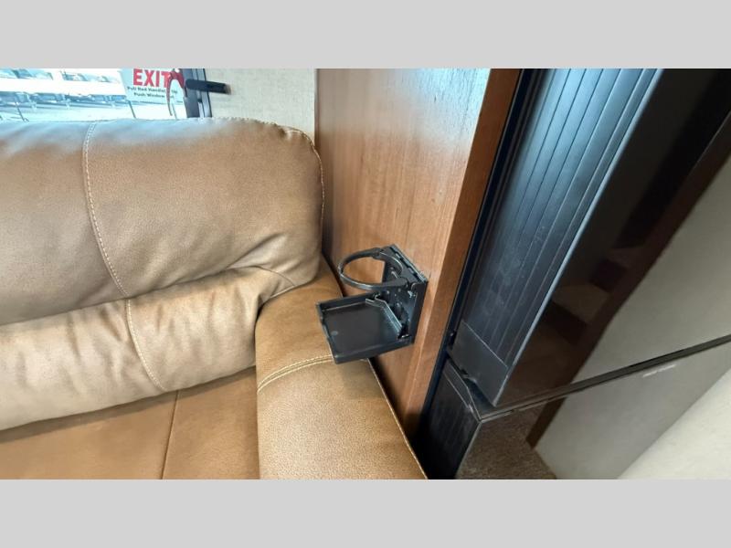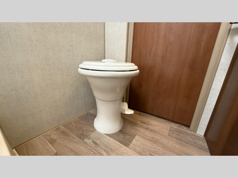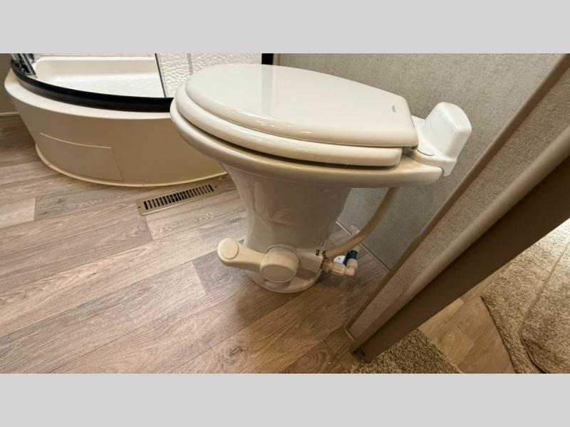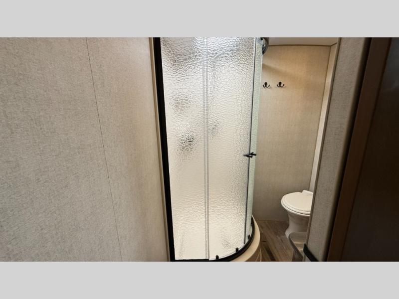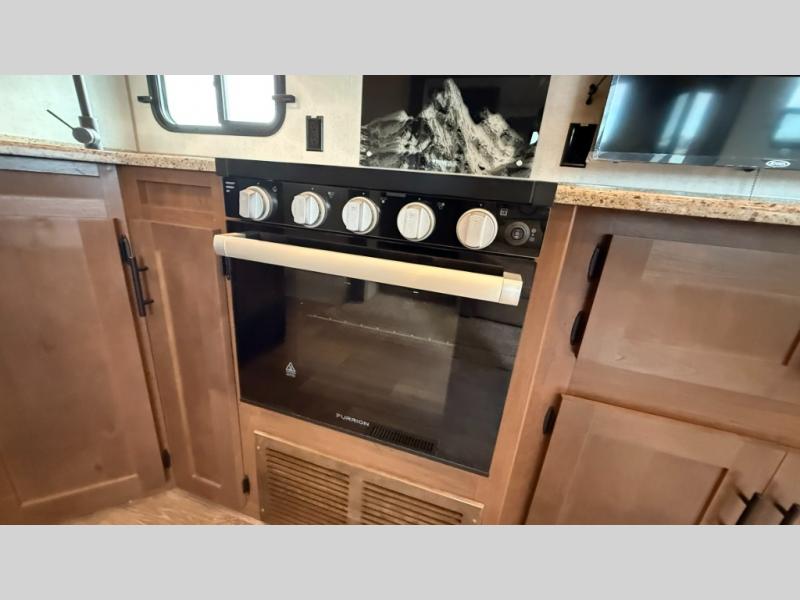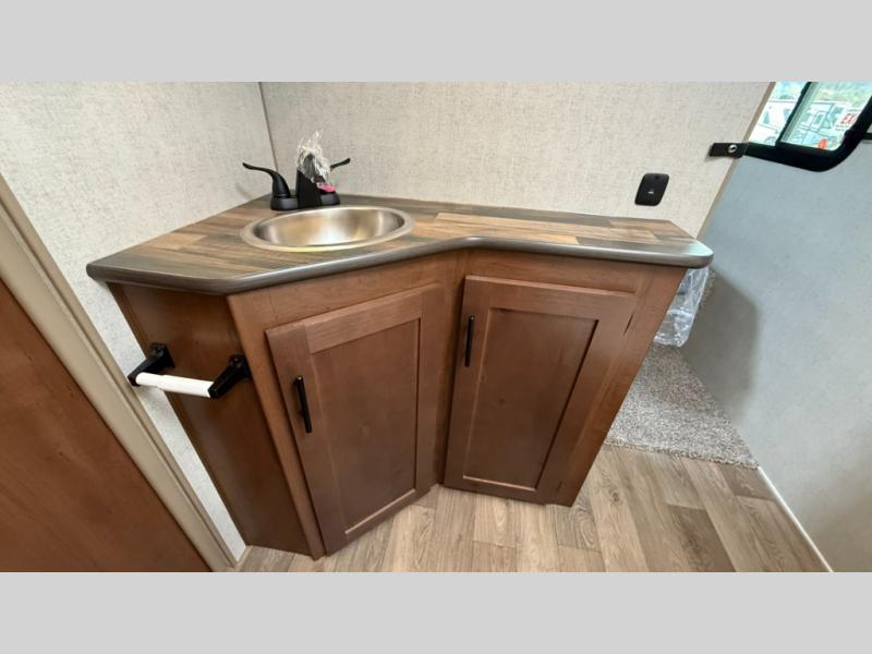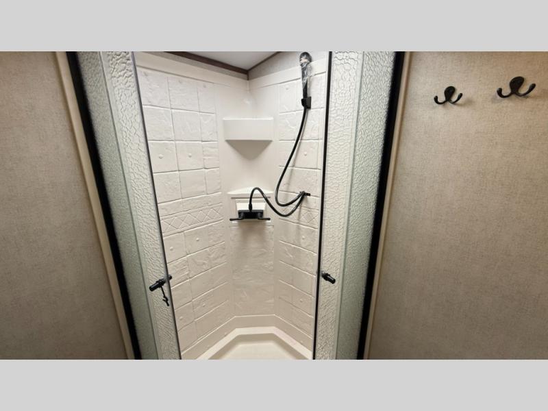 Enjoy time at the campground in this spacious travel trailer. There is a sleeper sofa slide out that will provide more floor space, along with sleeping space for guests! Once the chef makes dinner in the full kitchen, you can dine at the 45" x 84" mountain dinette. A full bath with a radius shower will let you clean up each day, and the front private bedroom will make you feel right at home. There is also a wardrobe slide here to give you additional storage and floor space!