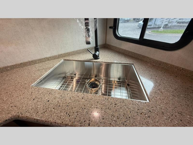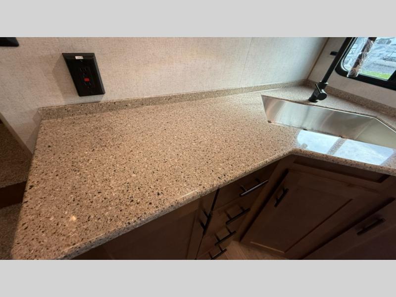 Each Glacier Peak Mountain Series fifth wheel by Outdoors RV is built tough for off-road performance with rugged 2" bonded aluminum frame walls, an integrated A-frame for added strength and ground clearance, and a custom built off-road chassis. You can plan to camp all year long since these fifth wheels are Climate Designed 4 Seasons with features such as, a triple layered four seasons roof insulation, an XL furnace, and a unique heated and insulated holding tank design. There are also off-grid camping features that will allow you to go off the beaten path when the adventure calls for it! Head inside to find residential height countertops, hardwood drawer fronts on all drawers, a Mountain Comfort mattress, plus many more comforts you would expect to find at home!
