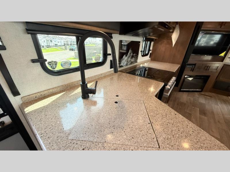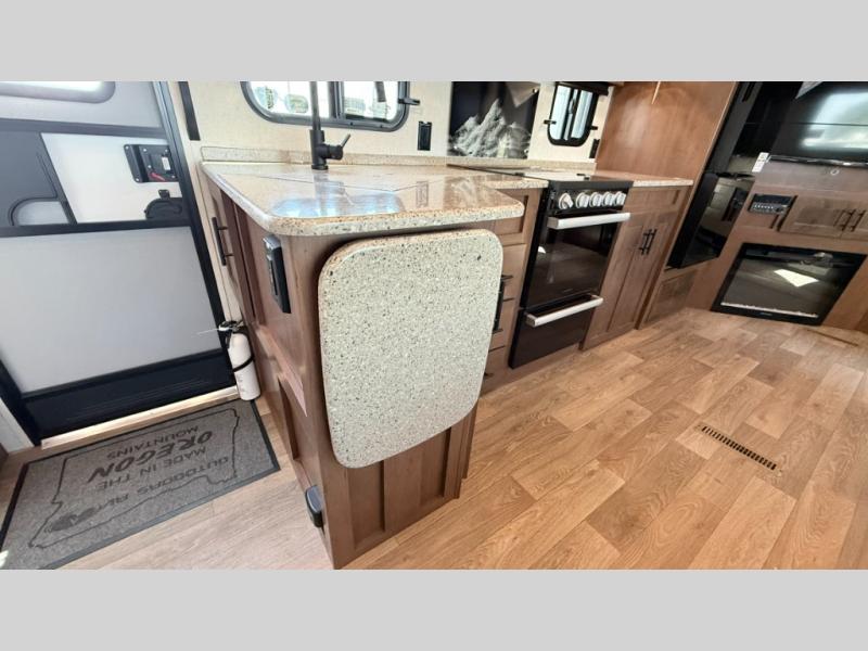 Each Glacier Peak Mountain Series fifth wheel by Outdoors RV is built tough for off-road performance with rugged 2" bonded aluminum frame walls, an integrated A-frame for added strength and ground clearance, and a custom built off-road chassis. You can plan to camp all year long since these fifth wheels are Climate Designed 4 Seasons with features such as, a triple layered four seasons roof insulation, an XL furnace, and a unique heated and insulated holding tank design. There are also off-grid camping features that will allow you to go off the beaten path when the adventure calls for it! Head inside to find residential height countertops, hardwood drawer fronts on all drawers, a Mountain Comfort mattress, plus many more comforts you would expect to find at home!