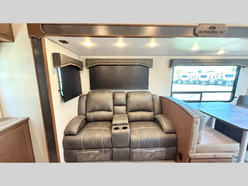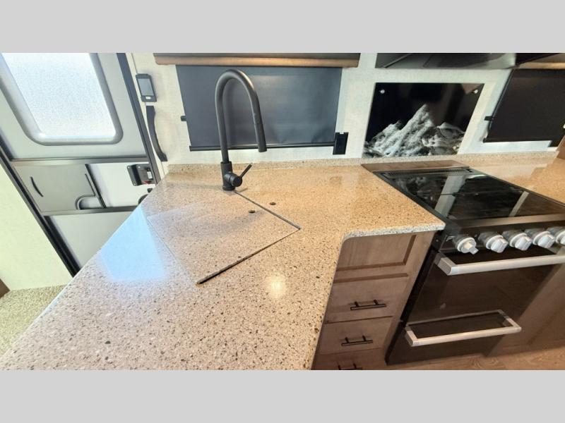 Each Glacier Peak Mountain Series fifth wheel by Outdoors RV is built tough for off-road performance with rugged 2" bonded aluminum frame walls, an integrated A-frame for added strength and ground clearance, and a custom built off-road chassis. You can plan to camp all year long since these fifth wheels are Climate Designed 4 Seasons with features such as, a triple layered four seasons roof insulation, an XL furnace, and a unique heated and insulated holding tank design. There are also off-grid camping features that will allow you to go off the beaten path when the adventure calls for it! Head inside to find residential height countertops, hardwood drawer fronts on all drawers, a Mountain Comfort mattress, plus many more comforts you would expect to find at home!