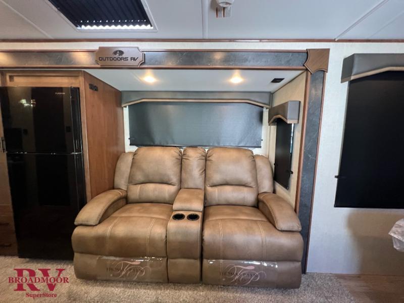 With any Timber Ridge Mountain Series travel trailer by Outdoors RV you will enjoy climate designed four seasons camping thanks to the thermal pane windows, XL furnace, plus unique heated and insulated holding tank design. The custom built chassis and rugged integrated A-frame are built for strength and durability, along with the rugged 2" bonded aluminum frame walls. Each model includes LG solid surface countertops, granite designed backsplash, vaulted radius ceilings, and a mountain comfort premium mattress for all-around comfort. You will also love the XL panoramic slide out windows and the dual pane living room skylight with a shade to let natural light in!