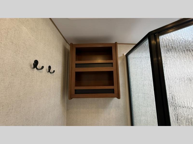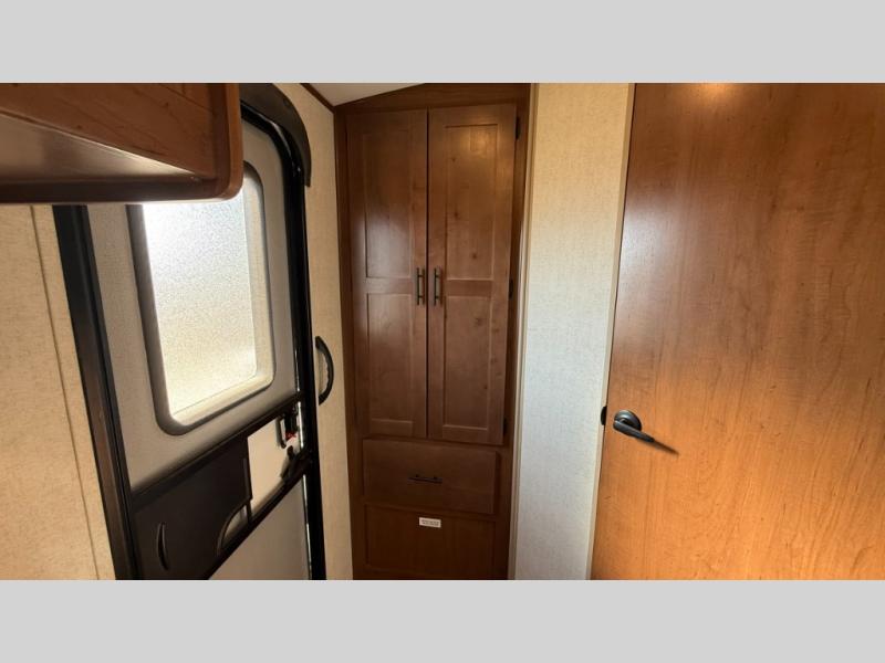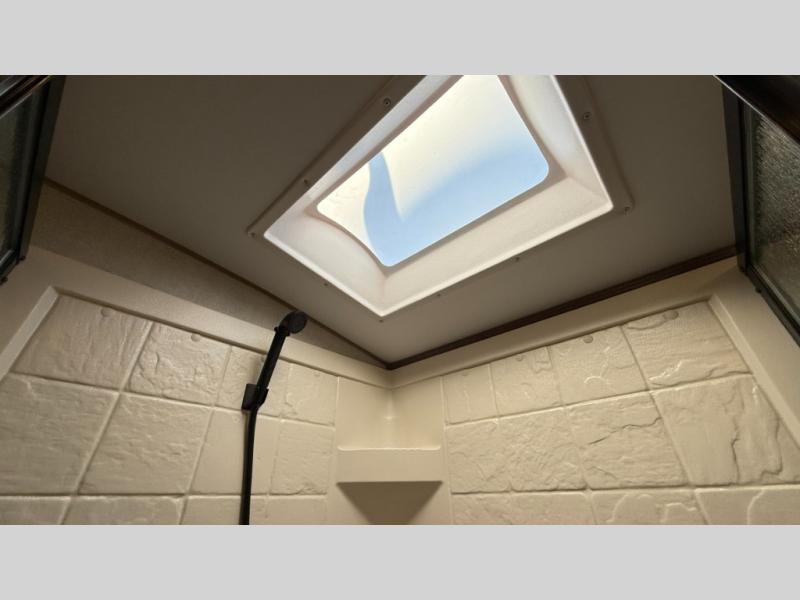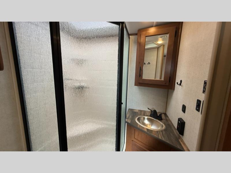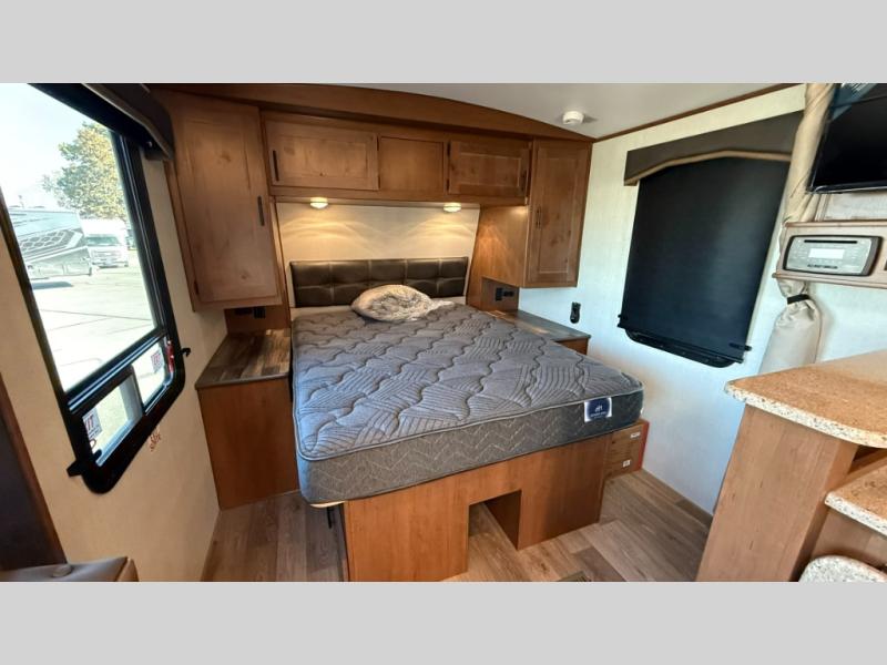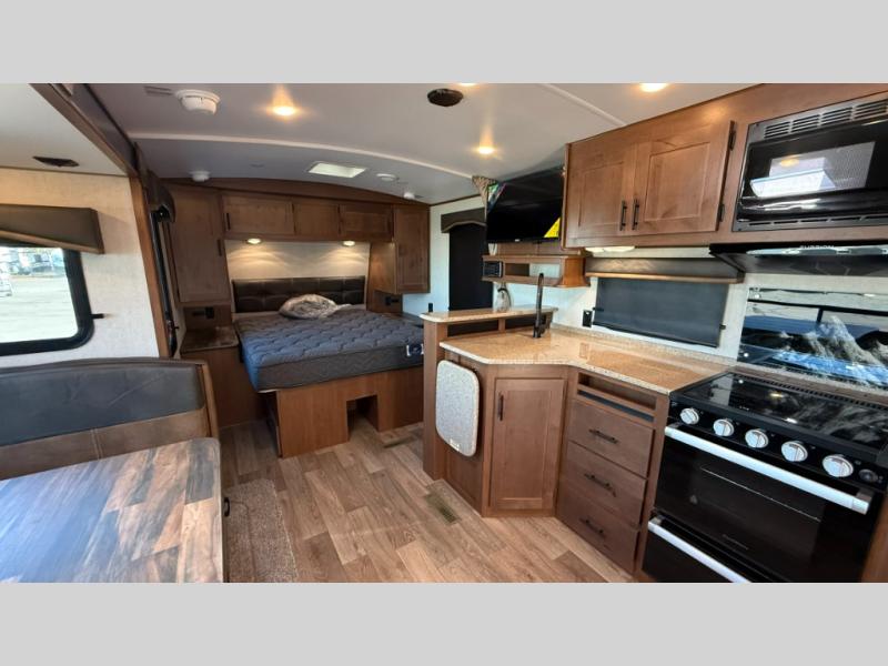 This is the perfect travel trailer for camping trips to the lake or your favorite campground. You will find a full kitchen with plenty of counter space, and a mountain dinette with a skylight to dine under natural lighting. The entryway closet/wardrobe will allow you to store jackets and shoes, and refrigerator will be perfect for your perishables. After you've cleaned up for the evening in the full bath with a shower skylight, head to the front bedroom for a great night's rest on the queen bed. You may even want to watch a movie on the swing-out 32" TV!
