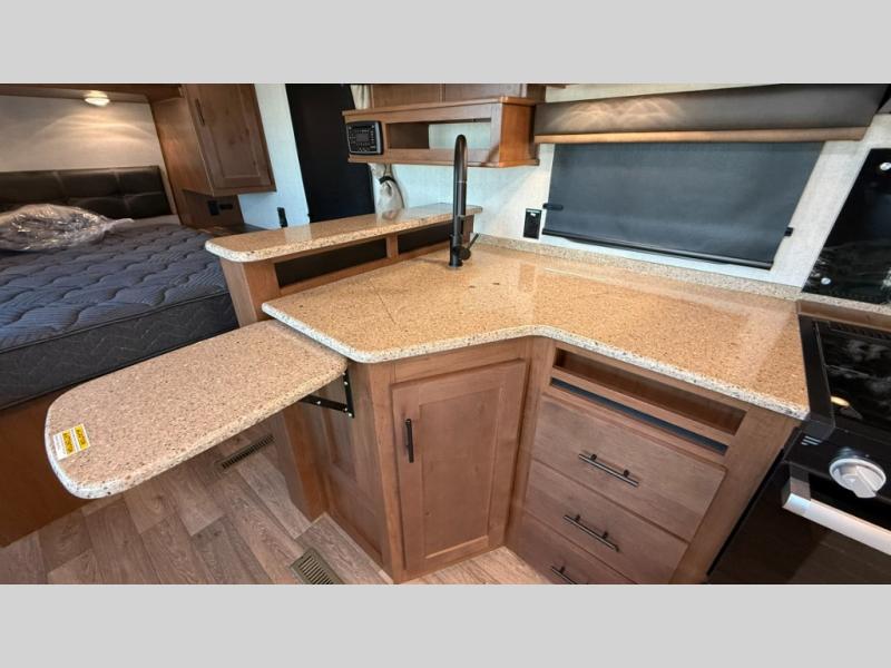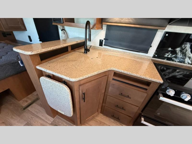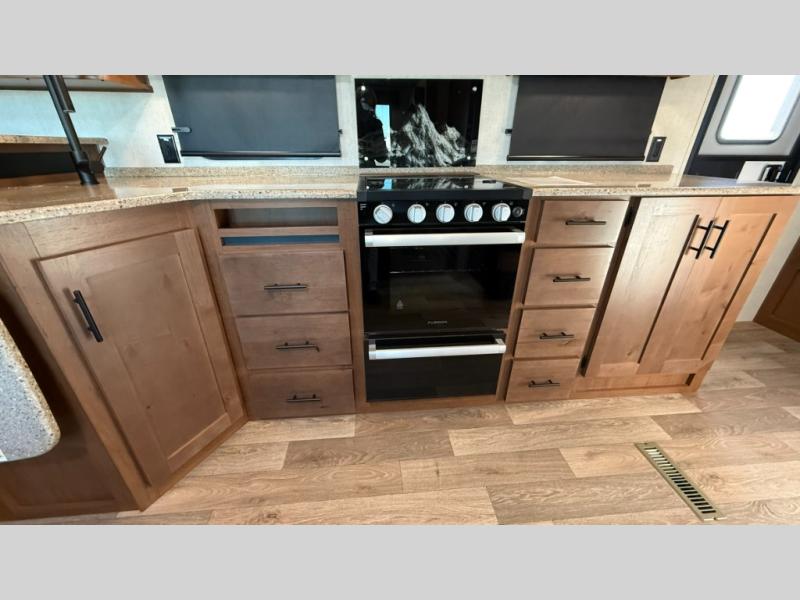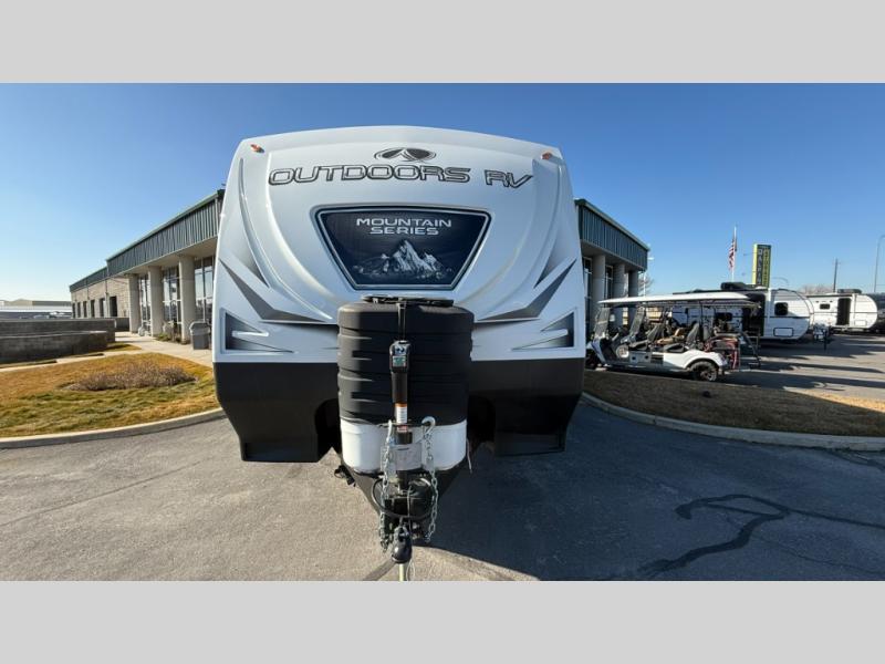 With any Timber Ridge Mountain Series travel trailer by Outdoors RV you will enjoy climate designed four seasons camping thanks to the thermal pane windows, XL furnace, plus unique heated and insulated holding tank design. The custom built chassis and rugged integrated A-frame are built for strength and durability, along with the rugged 2" bonded aluminum frame walls. Each model includes LG solid surface countertops, granite designed backsplash, vaulted radius ceilings, and a mountain comfort premium mattress for all-around comfort. You will also love the XL panoramic slide out windows and the dual pane living room skylight with a shade to let natural light in!