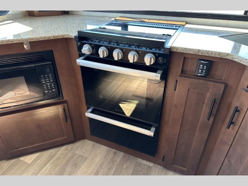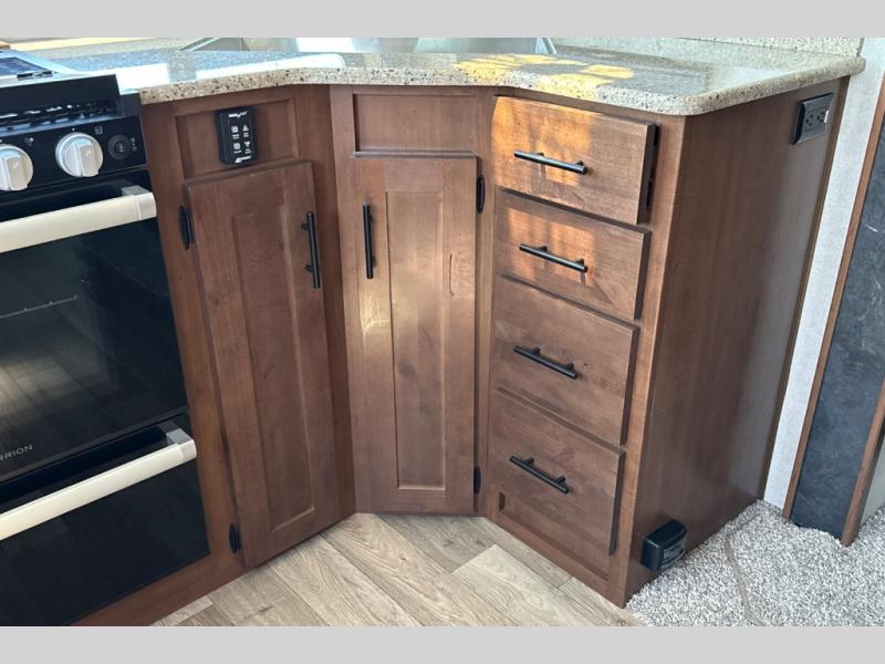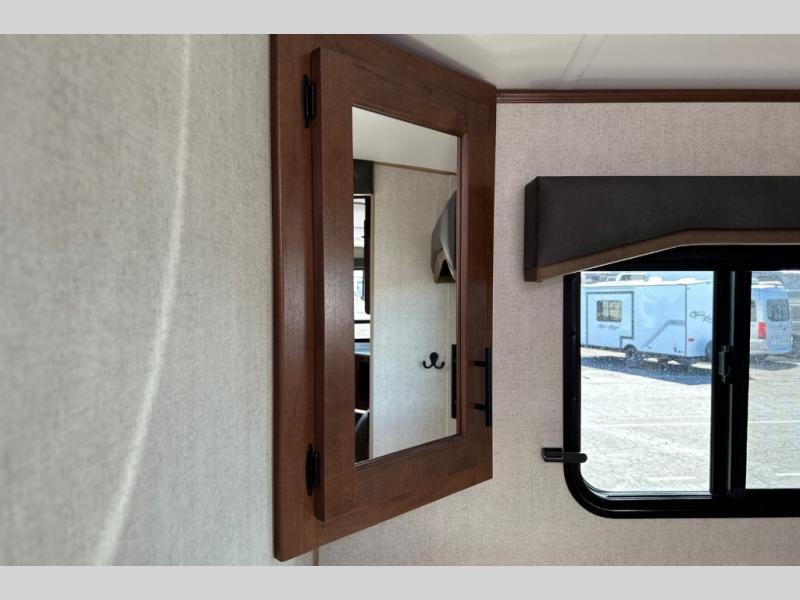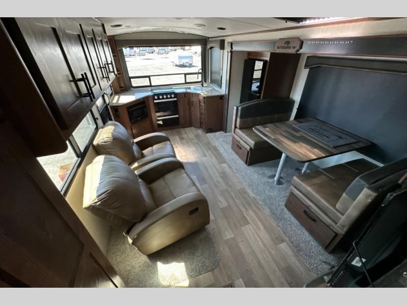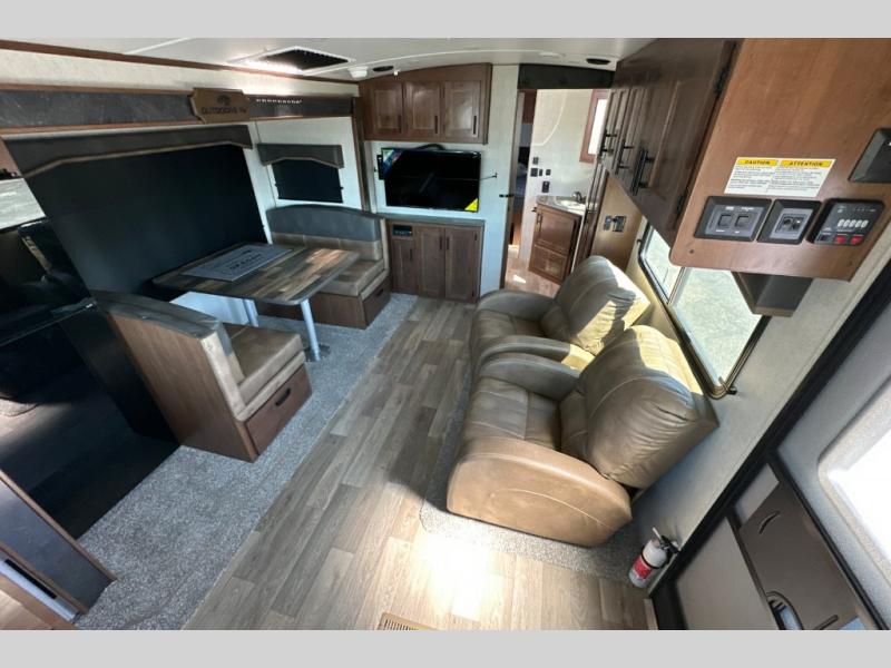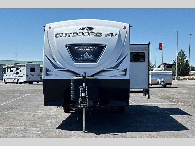 With any Timber Ridge Mountain Series travel trailer by Outdoors RV you will enjoy climate designed four seasons camping thanks to the thermal pane windows and the fully enclosed, heated, and insulated underbelly. The custom built chassis and rugged integrated A-frame are built for strength and durability, along with the rugged 2" bonded aluminum frame walls. Each model includes LG solid surface countertops, granite designed backsplash, vaulted radius ceilings, and a mountain comfort premium mattress for all-around comfort. You will also love the XL panoramic slide out windows and the dual pane living room skylight with a shade to let natural light in!