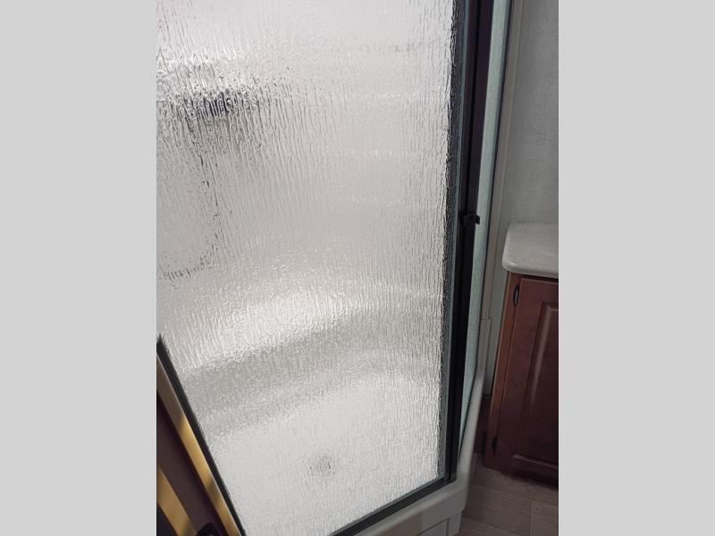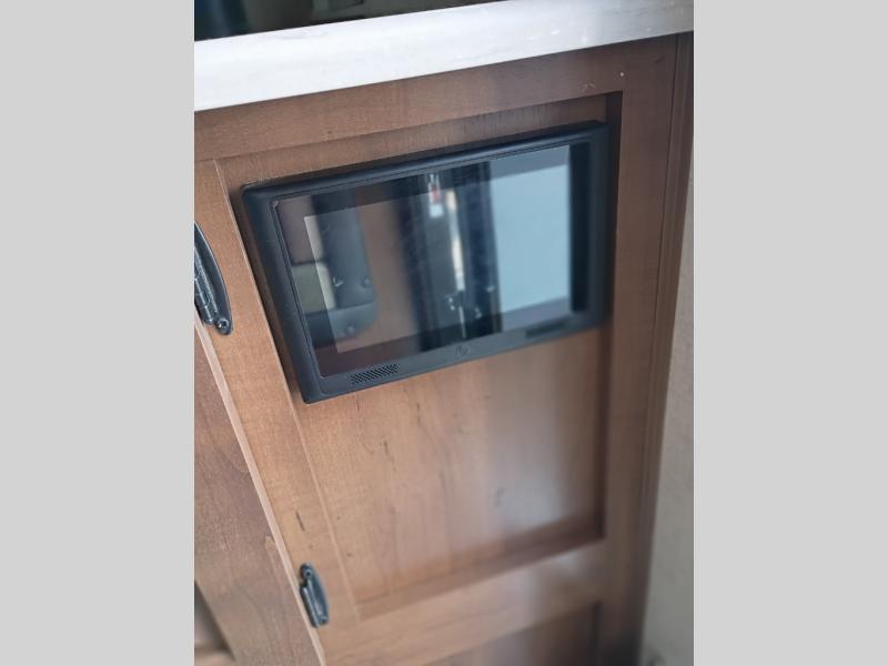 With any Timber Ridge Titanium Series travel trailer by Outdoors RV you will enjoy the sleek design frameless thermal pane windows, along with the silver fiberglass front cap and Titanium Series graphics package. The rugged 8' chassis with 5,100 lb. axles and XL ground clearance will make maneuvering tougher terrain easier than ever, and there is a wireless rear, side(s) turn camera system for hassle-free parking. Each model includes LG solid surface countertops, mountain lodge interiors, hardwood slide out fascia(s), and many more comforts!