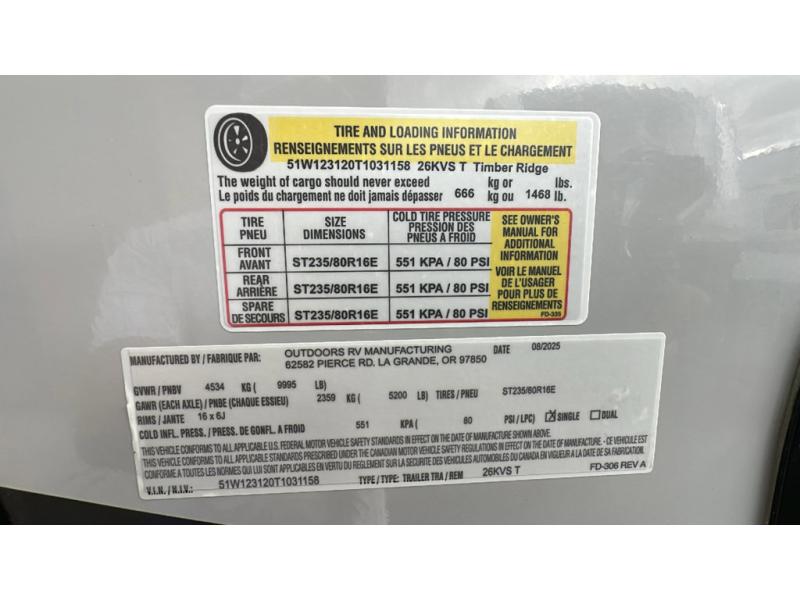 New 2026 Outdoors RV Timber Ridge Titanium Series 26KVS Travel Trailer