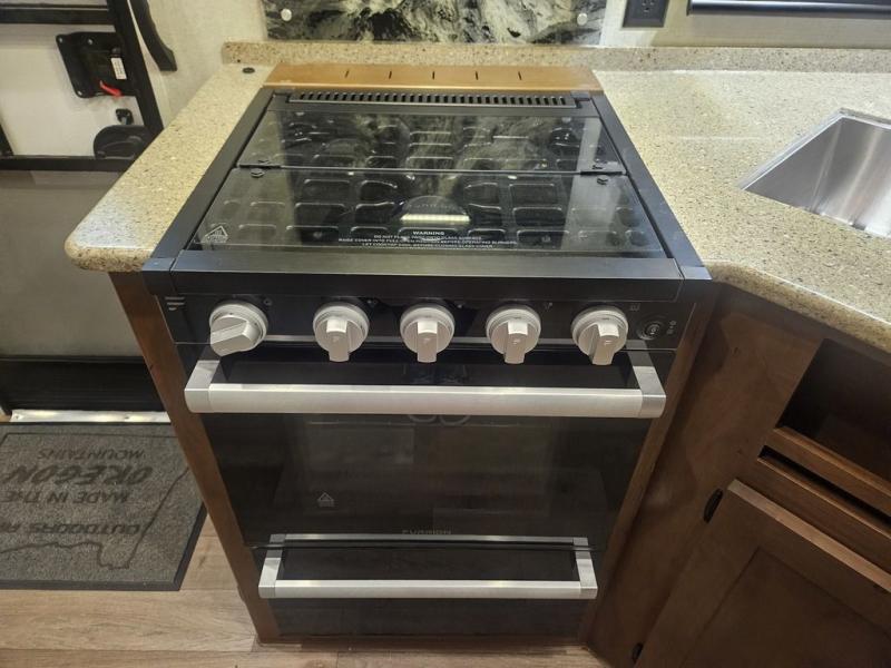 You will have everything you need for a fun family vacation in any one of these Outdoors RV Trail Series MTN TRX toy hauler travel trailers! They are held together with an integrated A-frame custom built cambered off-road chassis and rugged 2" bonded aluminum frame walls. The triple layered four seasons roof insulation, XL furnace, and unique heated insulated holding tank design make these ideal for four seasons of camping in the mountain states or Western Canada. An off-road X4 suspension and 400 watt solar system lets you go off the beaten path, plus there is a Cummins Onan 4K on-board gas generator with a 40 gallon fuel station to keep your toys ready to go. Inside, you'll enjoy LG solid surface kitchen countertops, a Mountain Comfort premium mattress, granite designed backsplash, and many more comforts!