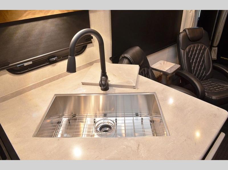 You will have everything you need for a fun family vacation in any one of these Outdoors RV Trail Series MTN TRX Titanium Series toy hauler travel trailers! They are held together with an integrated A-frame custom built cambered off-road chassis and rugged 2" bonded aluminum frame walls. The triple layered four seasons roof insulation, XL furnace, and unique heated insulated holding tank design make these ideal for four seasons of camping in the mountain states or Western Canada. The Titanium Series premium trim features a Lamilux HD 4000 high gloss silver fiberglass, a silver fiberglass front cap, and sleek design frameless thermal pane windows. Inside, you'll enjoy LG solid surface kitchen countertops, mountain lodge interiors with hardwood throughout and an all-leather design, a stainless-steel sunken range, microwave, and range hood, plus an upgraded showerhead to name a few comforts!