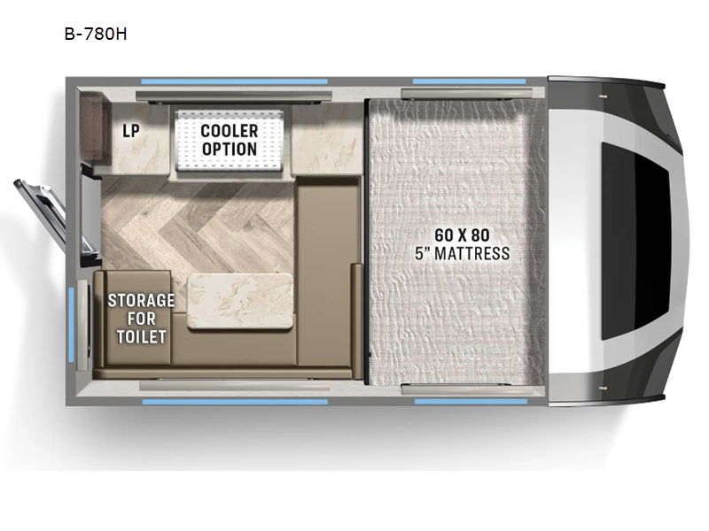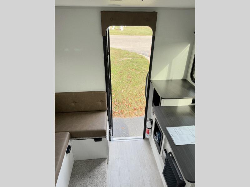 This Overland Vehicle Equipped is perfect for all your outdoor adventures! Enjoy a good night's rest on the front queen bed with a 5" mattress. A Maxx air vent keeps the air circulating and an optional A/C can be added for more comfort. The U-shaped dinette is great for enjoying meals and even has a storage area for a toilet, and you can add the cooler option to keep food fresh.