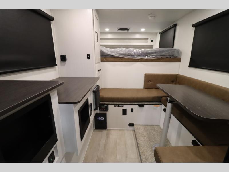 Each Backpack Edition truck camper by Palomino is constructed with high-density block foam insulation, an alpha super flex membrane roof, and Azdel substrate for added durability. You will also love the white or grey hi-gloss exterior fiberglass that is eye-catching and easy to keep clean. Inside, you'll find Congoleum flooring, ball bearing drawer guides, and LED lighting to keep your space bright. If you'd like to further customize your camper, consider choosing the optional roof rack, dually bracket, entry step, or optional air conditioning!