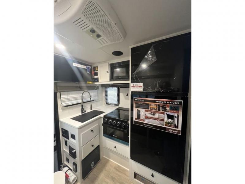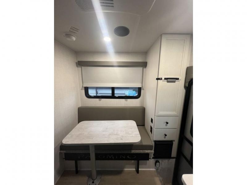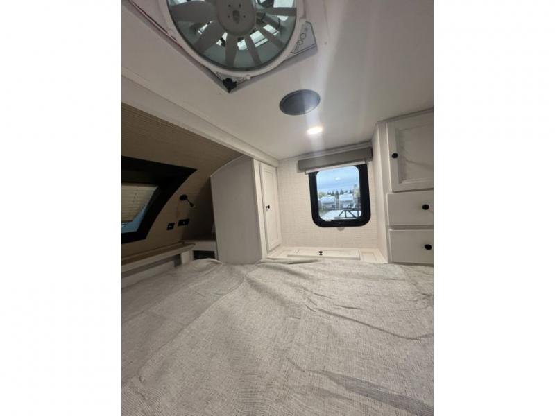 Each Backpack Edition truck camper by Palomino is constructed with high-density block foam insulation, an alpha super flex membrane roof, and Azdel substrate for added durability. You will also love the white or grey hi-gloss exterior fiberglass that is eye-catching and easy to keep clean. Inside, you'll find solid surface countertops, white cabinets, an undermount sink, and more comforts. The 200-watts of solar power and 100 Amp lithium battery will keep you powered up, and the electric jacks will have you set up at camp in no-time!