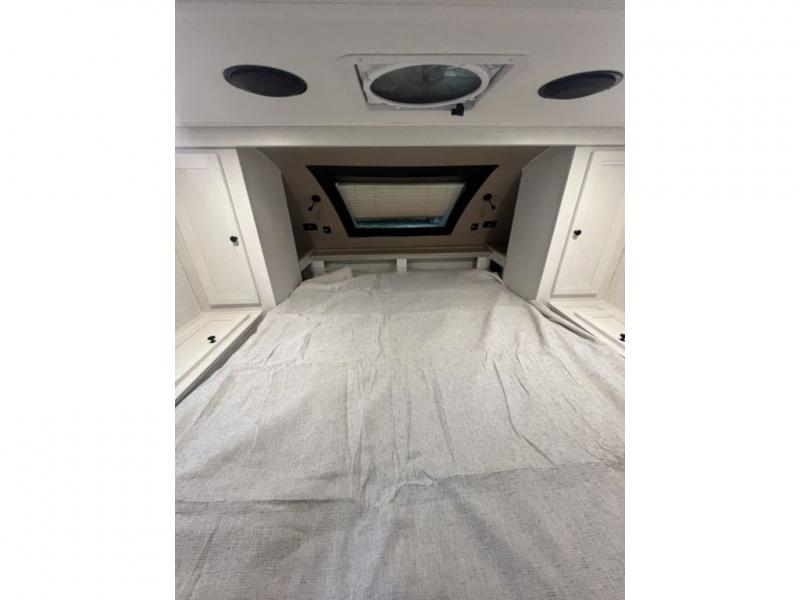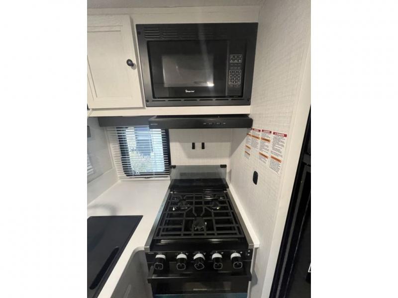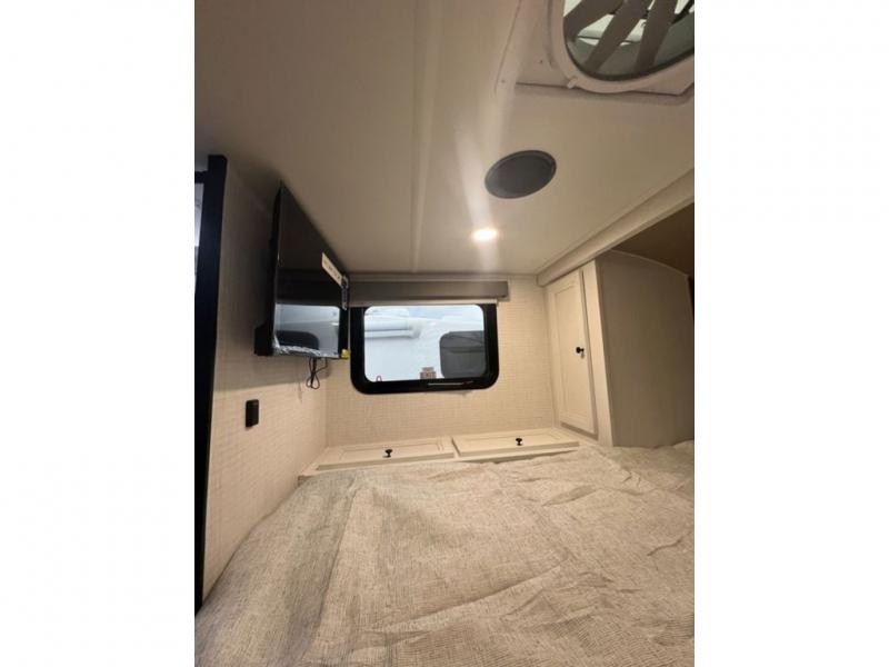 Enjoy time at the campground in this cozy truck camper! The cooktop and microwave oven will let you make meals each day, and there is a 11 cu. ft. 12V refrigerator for perishables. The sofa with a table provides a place to dine together, and this unit includes a split style dry bath with the shower on one side, and the private toilet and sink on the other! A front queen bed includes an entertainment center with a TV, dual chests, and a closet for ample storage space!