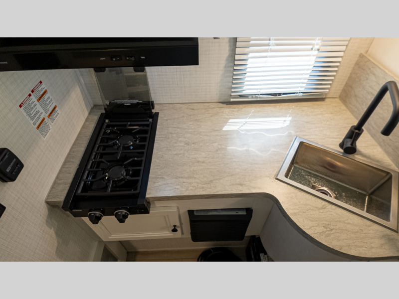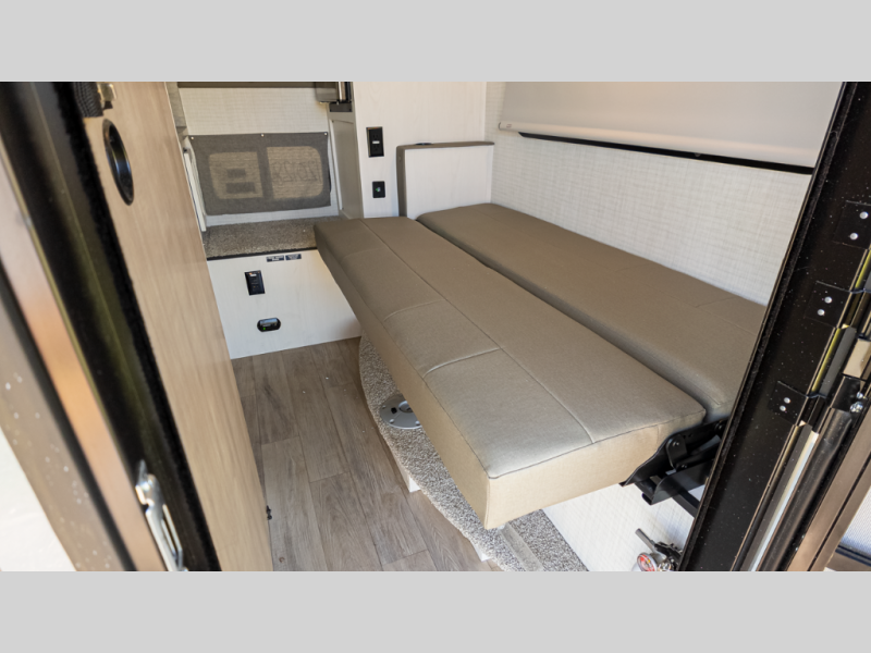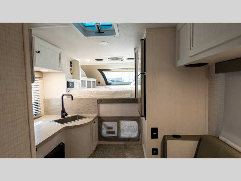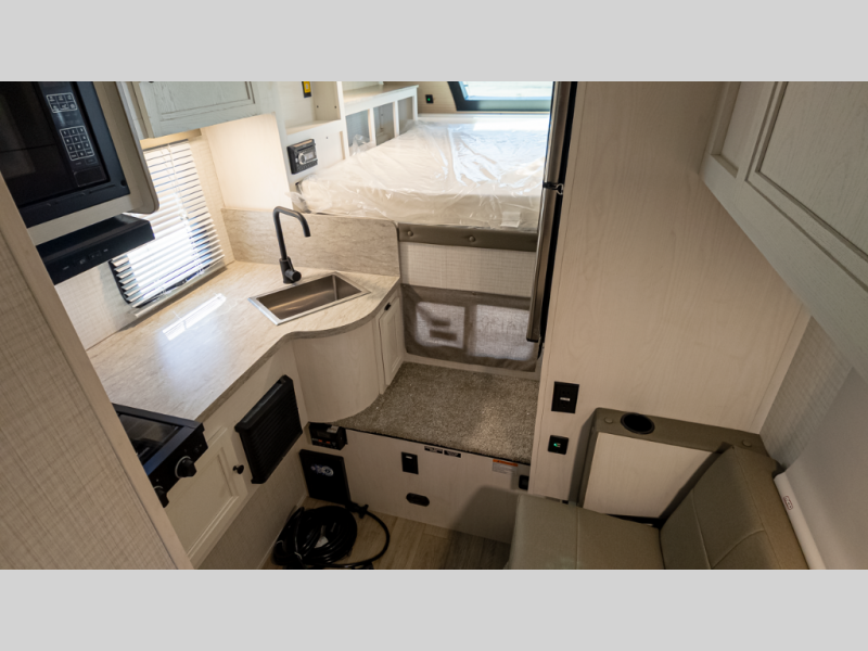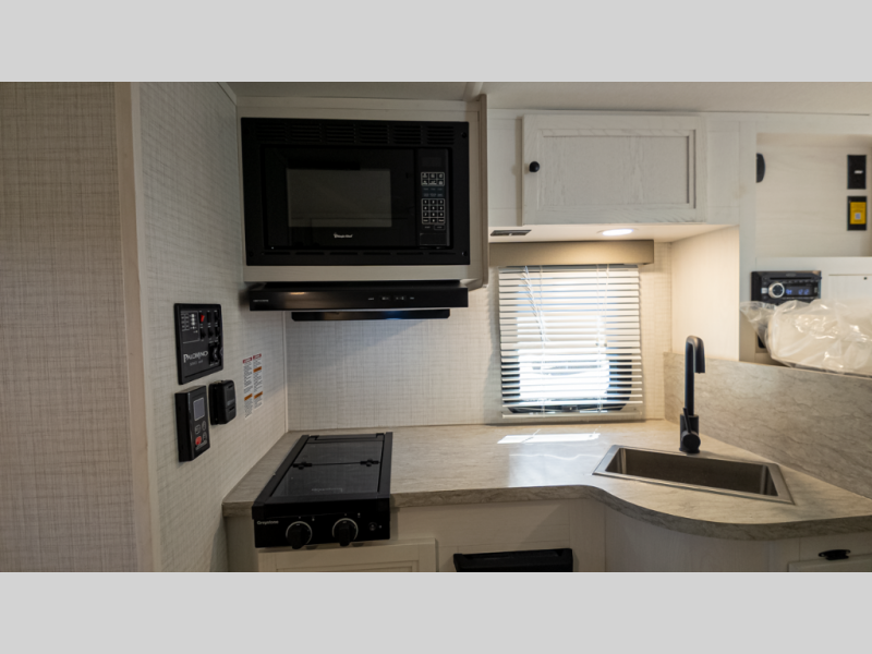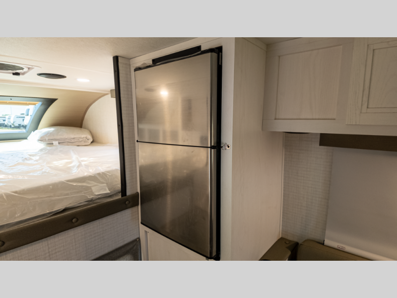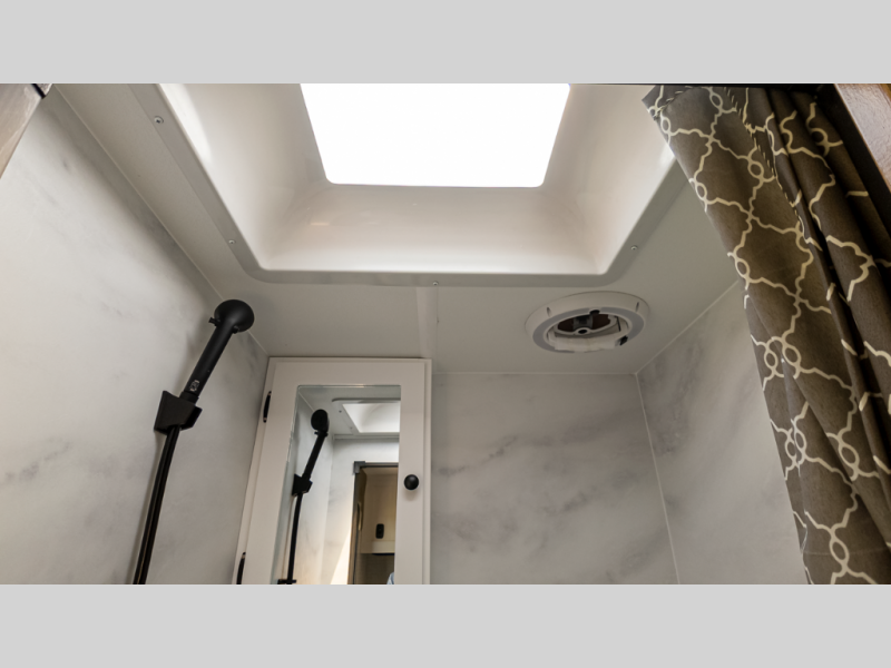 - Home on board: wet bathroom, 11 cu ft refrigerator, jackknife sofa, MaxxAir ventilation, LED lights—comfort that travels