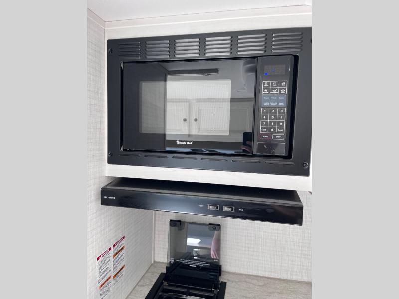 You will have everything you need for a comfortable trip in this hard side truck camper! There is a front queen bed to lay your head on at night with storage next to it and an entertainment center if you choose to add the optional TV. Above the two burner cooktop and sink are overhead cabinets to store your cooking essentials. The 60" x 22" jackknife sofa is not only a comfortable place to enjoy your meals, but also for transforming into an extra sleeping space, plus it has overhead cabinets to store your games. You even have a wet bath to freshen up in each morning!