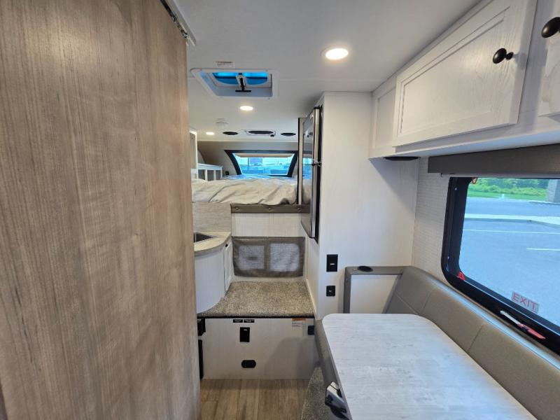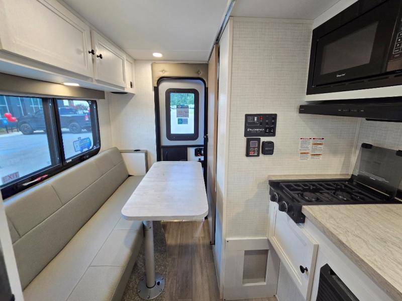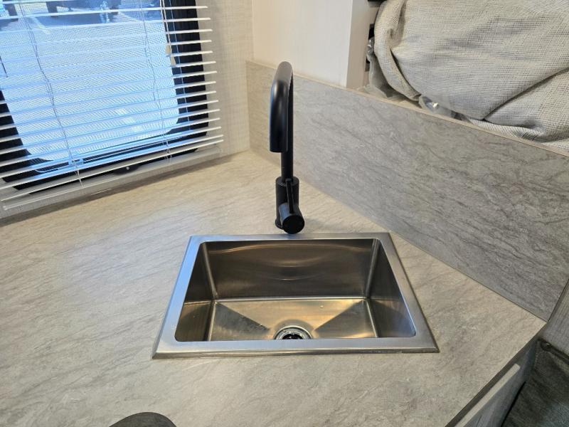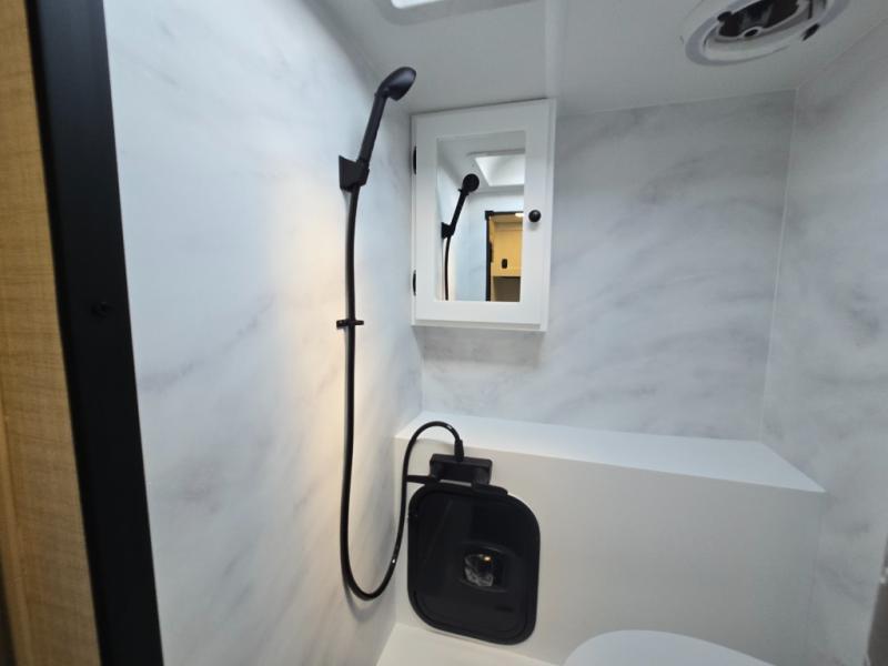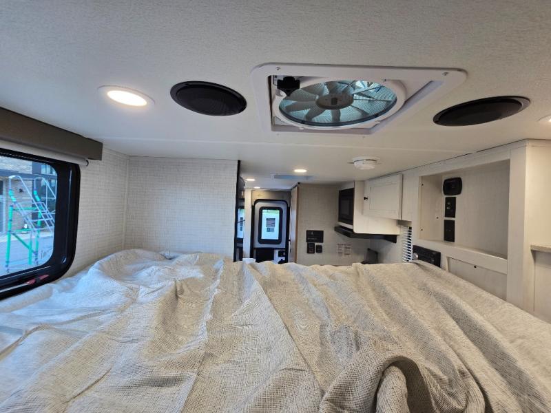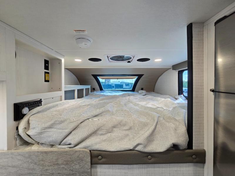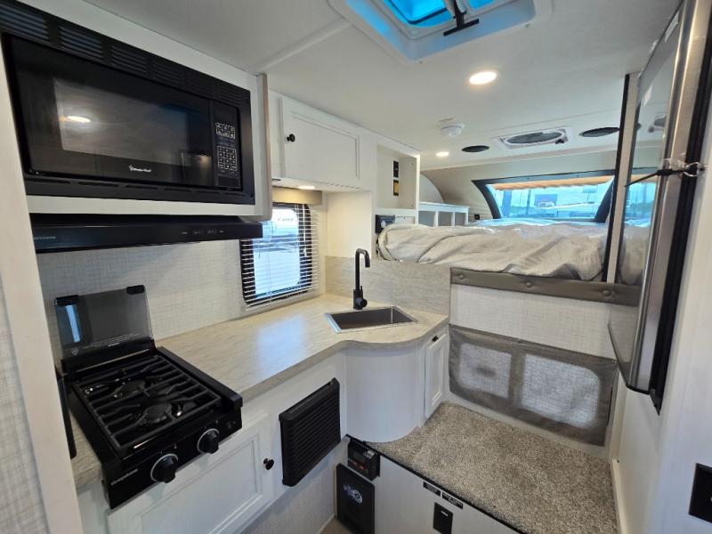 You will have everything you need for a comfortable trip in this hard side truck camper! There is a front queen bed to lay your head on at night with storage next to it and an entertainment center if you choose to add the optional TV. Above the two burner cooktop and sink are overhead cabinets to store your cooking essentials. The 60" x 22" jackknife sofa is not only a comfortable place to enjoy your meals, but also for transforming into an extra sleeping space, plus it has overhead cabinets to store your games. You even have a wet bath to freshen up in each morning!