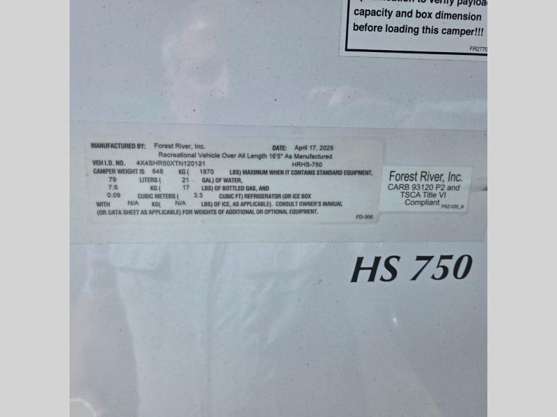 New 2026 Palomino Backpack Edition HS-750 Truck Camper