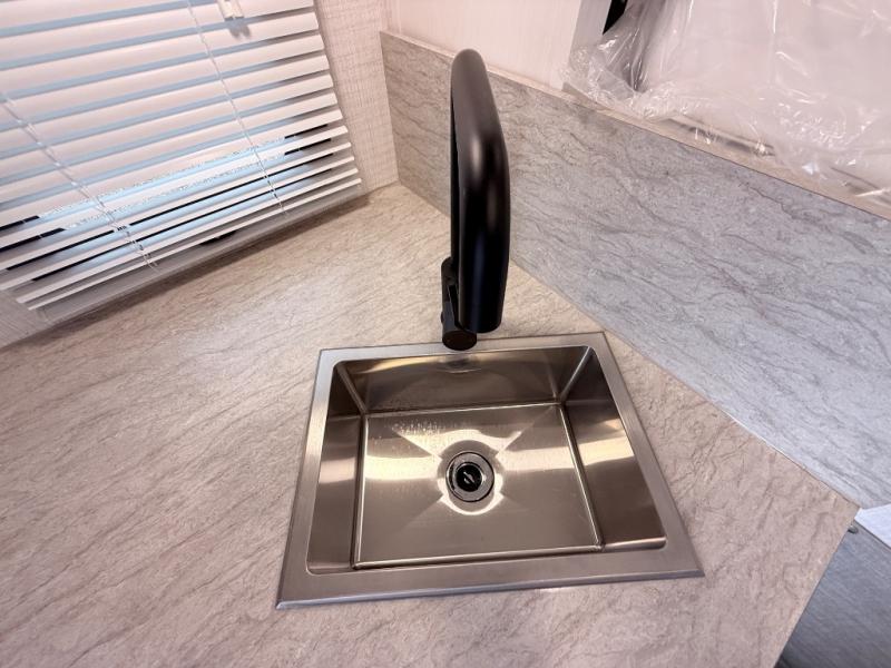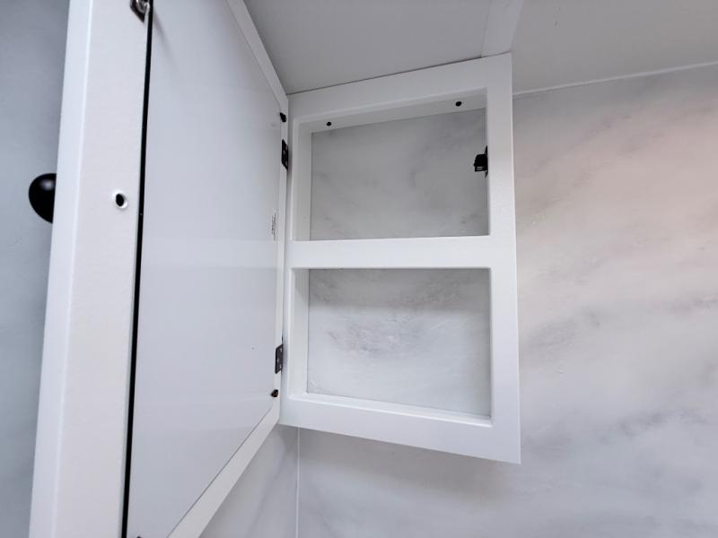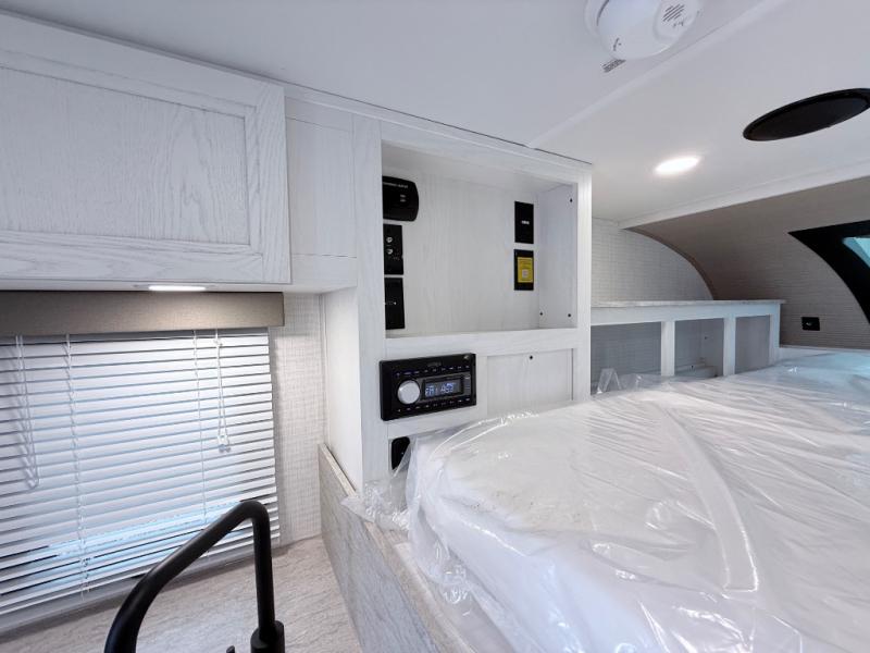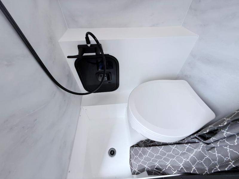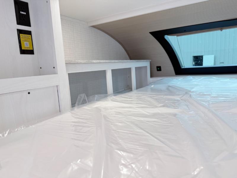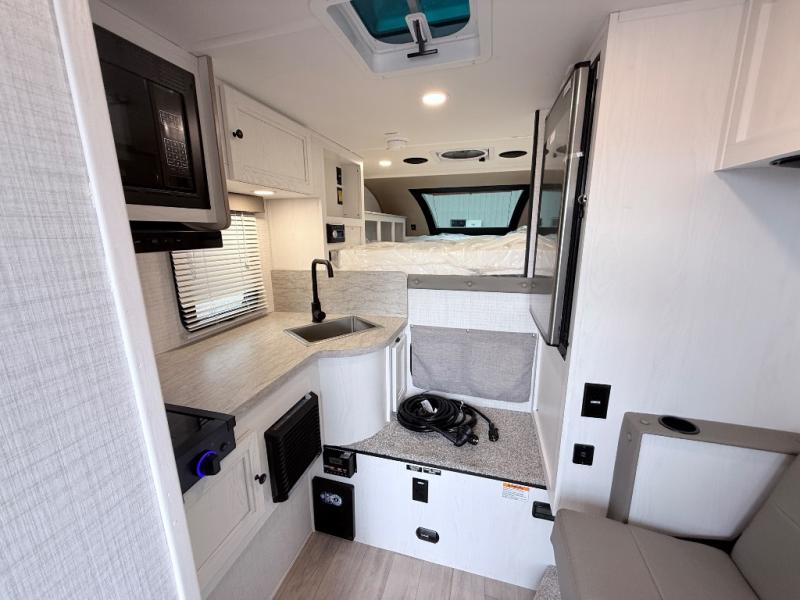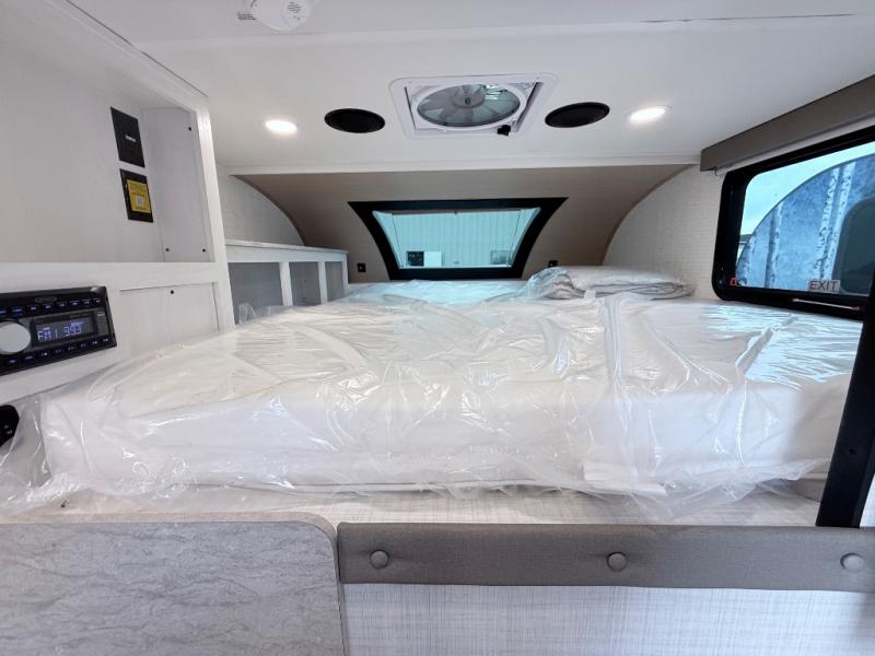 You will have everything you need for a comfortable trip in this hard side truck camper! There is a front queen bed to lay your head on at night with storage next to it and an entertainment center if you choose to add the optional TV. Above the two burner cooktop and sink are overhead cabinets to store your cooking essentials. The 60" x 22" jackknife sofa is not only a comfortable place to enjoy your meals, but also for transforming into an extra sleeping space, plus it has overhead cabinets to store your games. You even have a wet bath to freshen up in each morning!