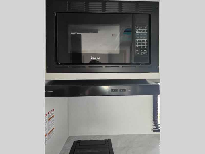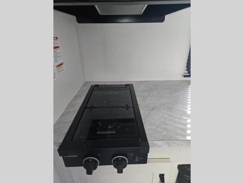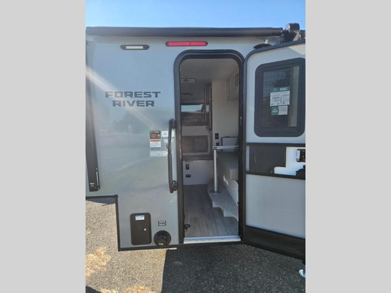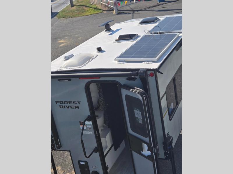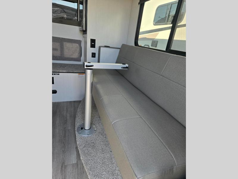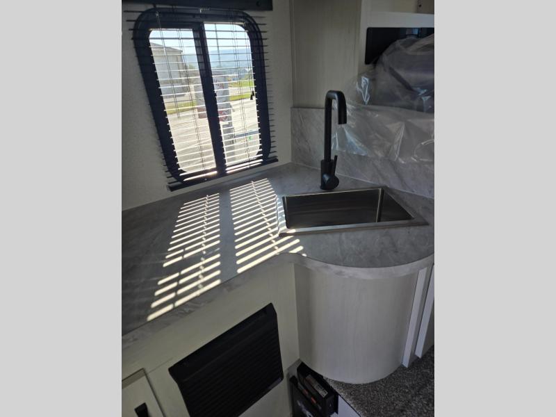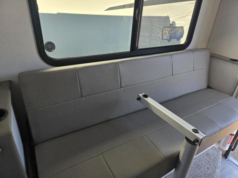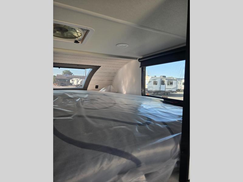 You will have everything you need for a comfortable trip in this hard side truck camper! There is a front queen bed to lay your head on at night with storage next to it and an entertainment center if you choose to add the optional TV. Above the two burner cooktop and sink are overhead cabinets to store your cooking essentials. The 60" x 22" jackknife sofa is not only a comfortable place to enjoy your meals, but also for transforming into an extra sleeping space, plus it has overhead cabinets to store your games. You even have a wet bath to freshen up in each morning!