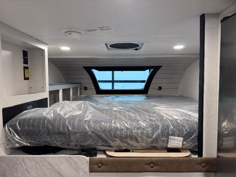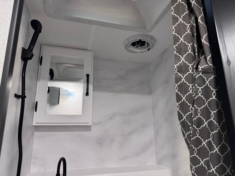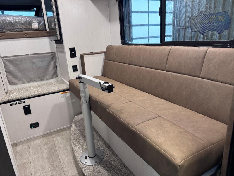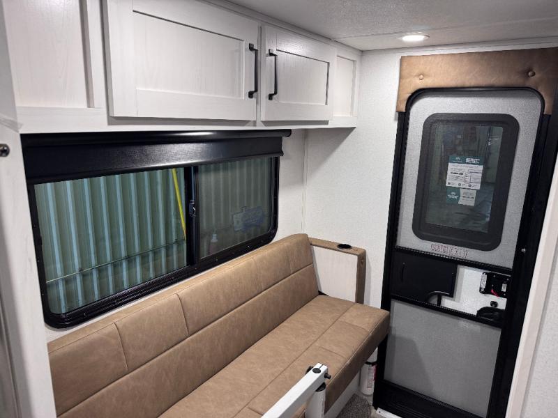 You will have everything you need for a comfortable trip in this hard side truck camper! There is a front queen bed to lay your head on at night with storage next to it and an entertainment center if you choose to add the optional TV. Above the two burner cooktop and sink are overhead cabinets to store your cooking essentials. The 60" x 22" jackknife sofa is not only a comfortable place to enjoy your meals, but also for transforming into an extra sleeping space, plus it has overhead cabinets to store your games. You even have a wet bath to freshen up in each morning!