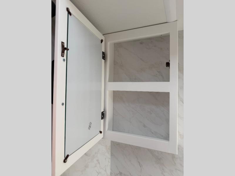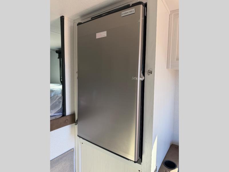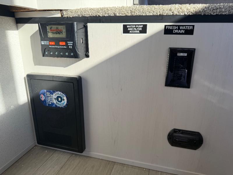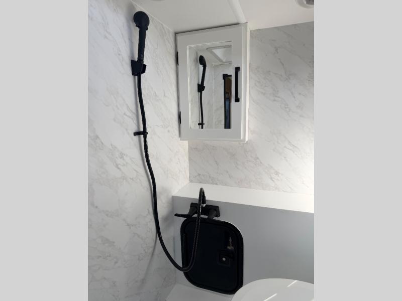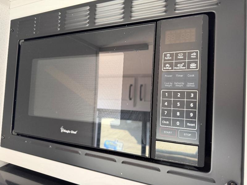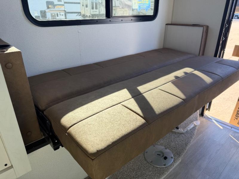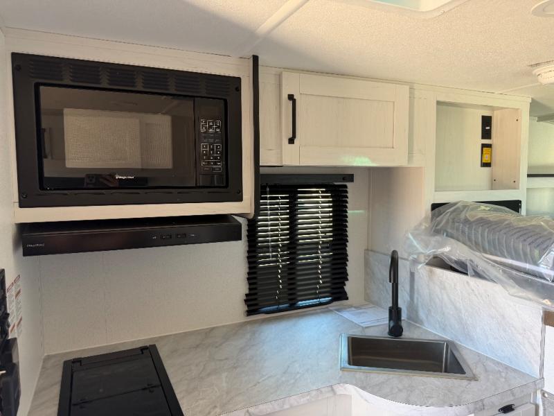 You will have everything you need for a comfortable trip in this hard side truck camper! There is a front queen bed to lay your head on at night with storage next to it and an entertainment center if you choose to add the optional TV. Above the two burner cooktop and sink are overhead cabinets to store your cooking essentials. The 60" x 22" jackknife sofa is not only a comfortable place to enjoy your meals, but also for transforming into an extra sleeping space, plus it has overhead cabinets to store your games. You even have a wet bath to freshen up in each morning!
