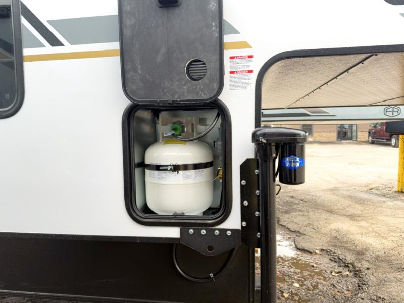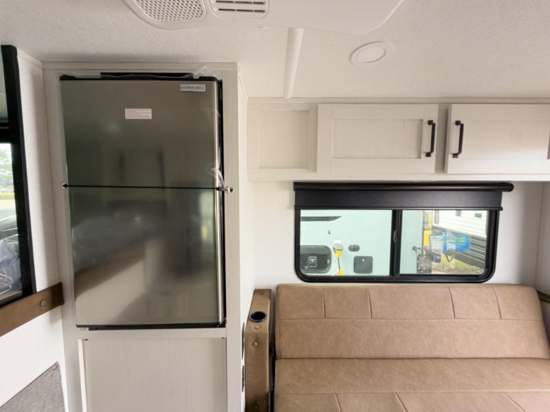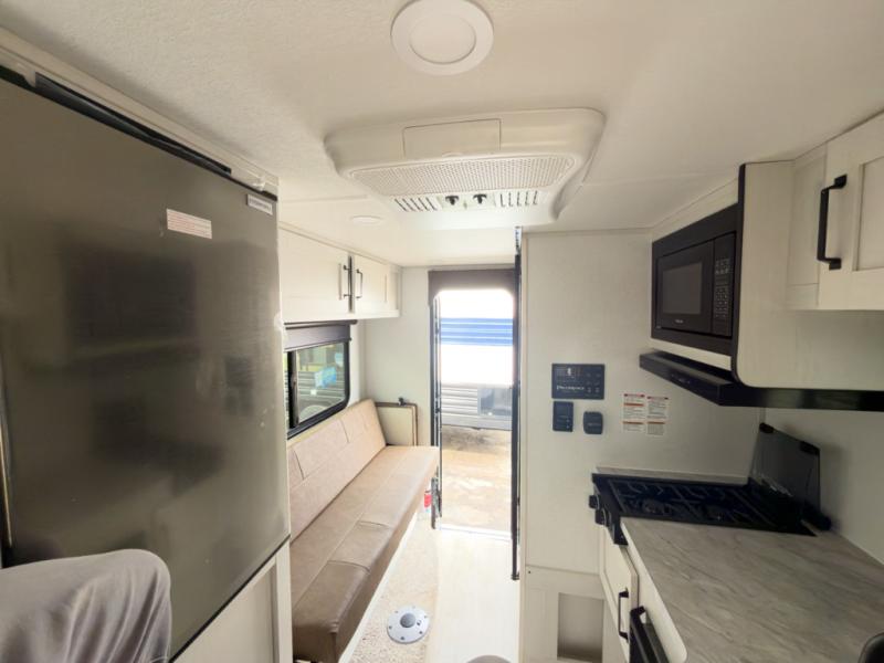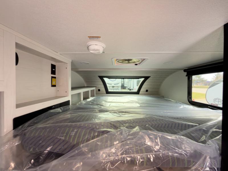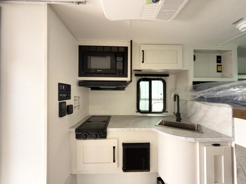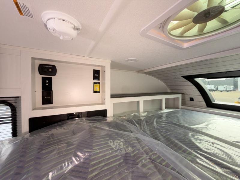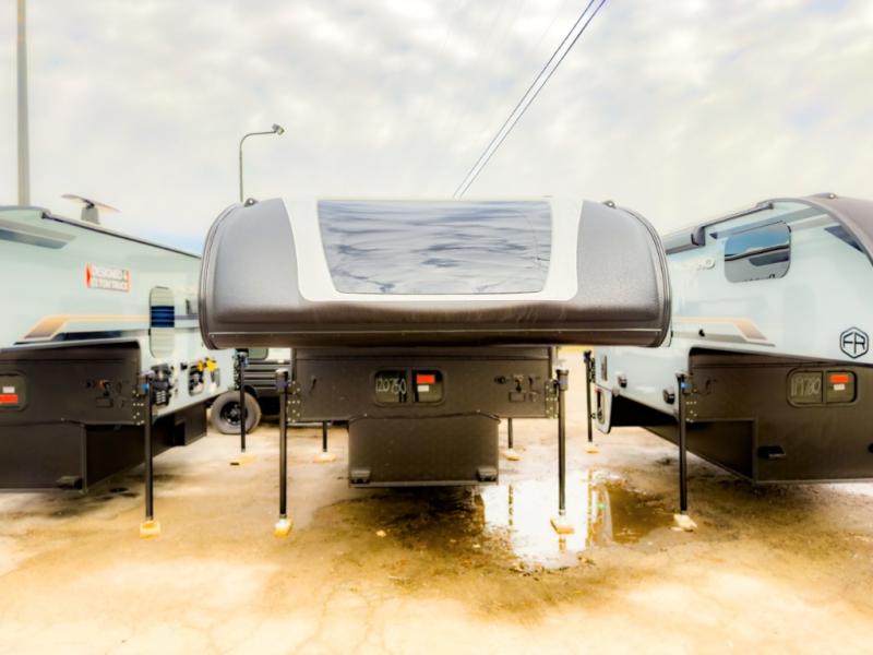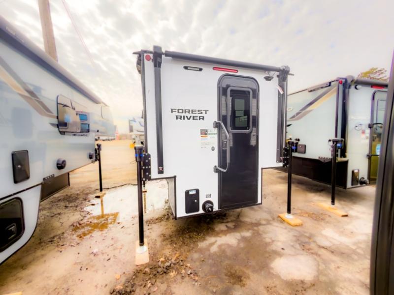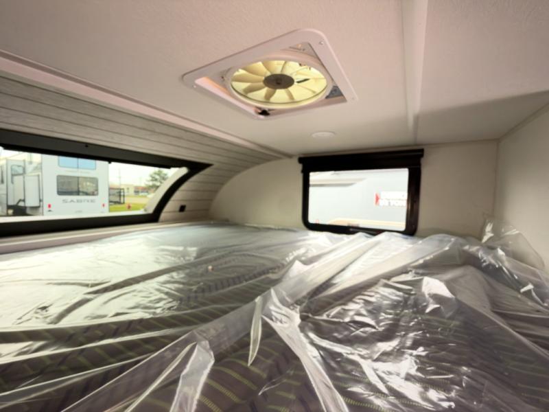 You will have everything you need for a comfortable trip in this hard side truck camper! There is a front queen bed to lay your head on at night with storage next to it and an entertainment center if you choose to add the optional TV. Above the two burner cooktop and sink are overhead cabinets to store your cooking essentials. The 60" x 22" jackknife sofa is not only a comfortable place to enjoy your meals, but also for transforming into an extra sleeping space, plus it has overhead cabinets to store your games. You even have a wet bath to freshen up in each morning!