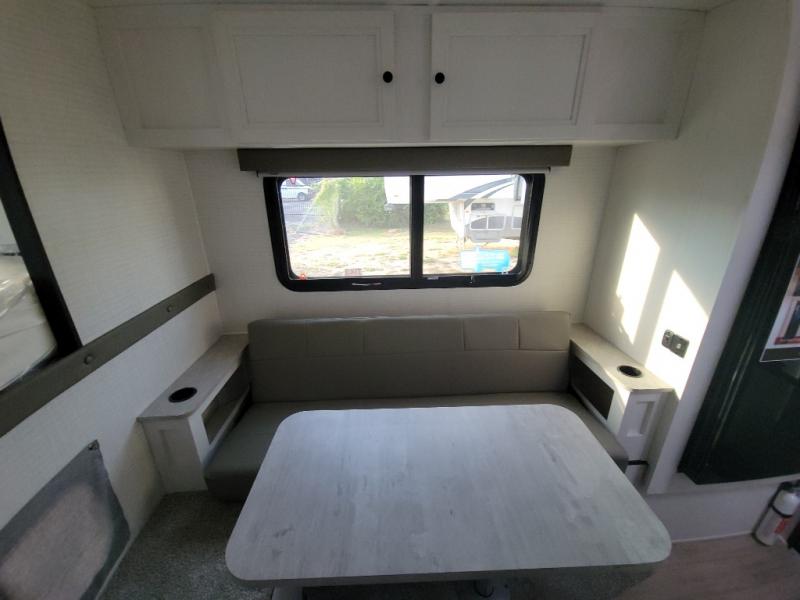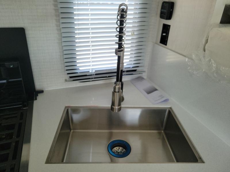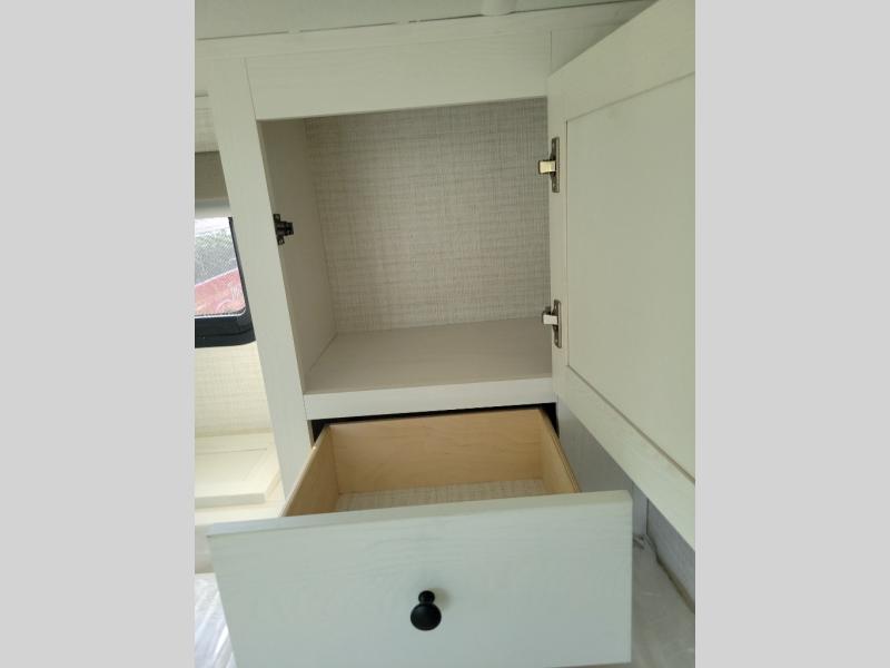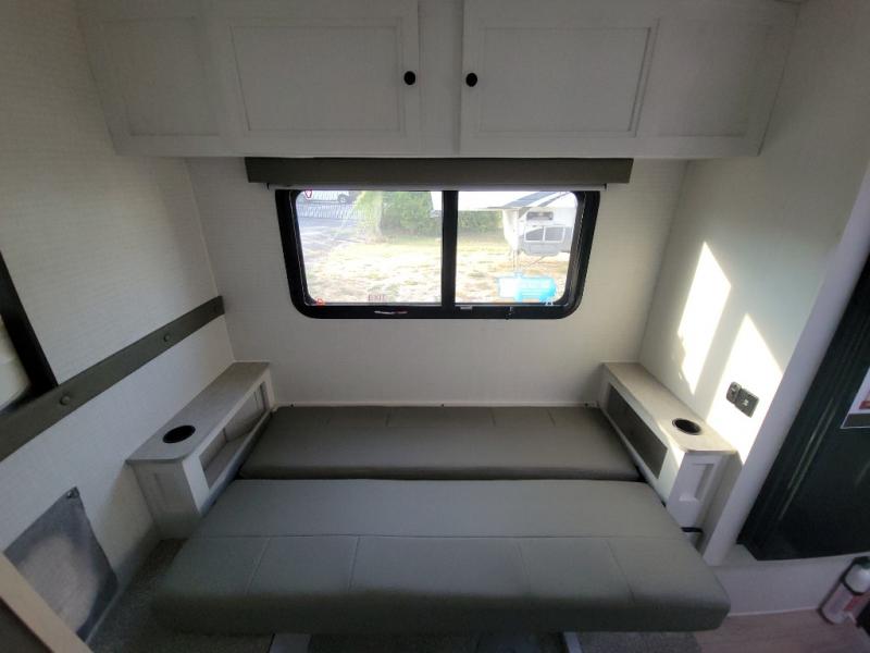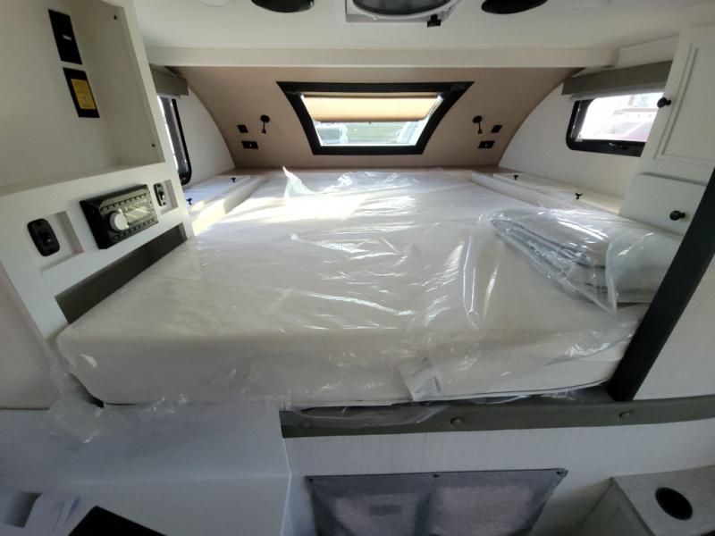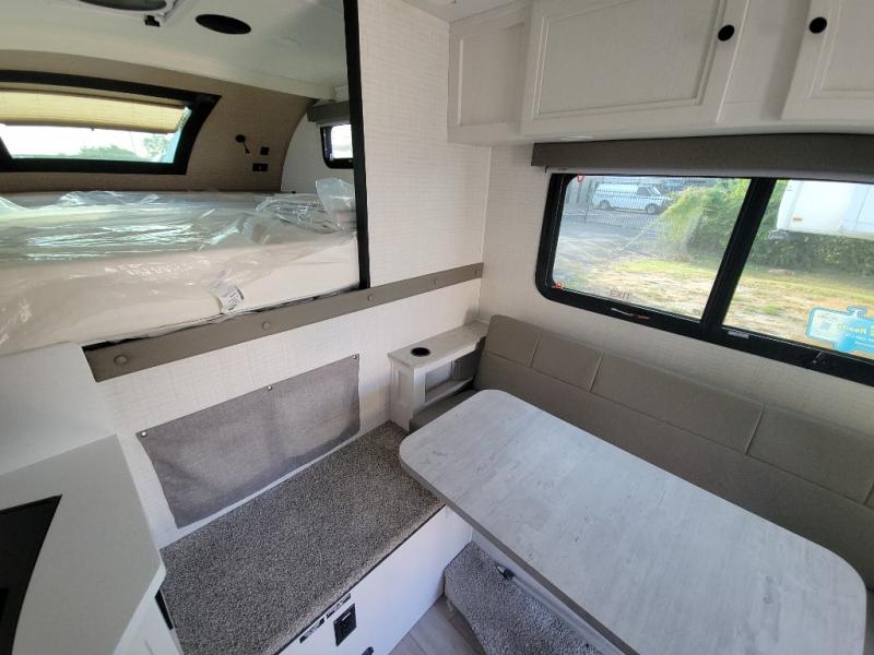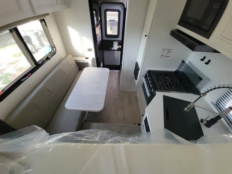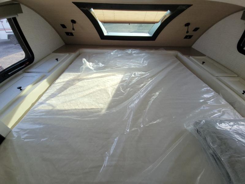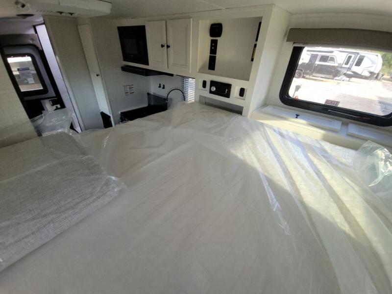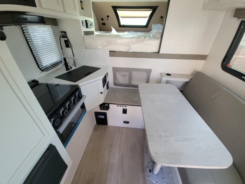 Pick your favorite fishing spot and load up this hard side truck camper! You can fry your catch of the day on the cooktop and enjoy a cold beverage from the refrigerator while you cook it. The 60" jackknife sofa offers a comfortable place for an afternoon nap or for an extra guest to sleep at night while you sleep on the front queen bed which has a wrap around nightstand, storage chests on either side, and a closet to keep your clothes wrinkle-free. If you're needing more sleeping space, you might consider adding the optional Euro bunk above the sofa!