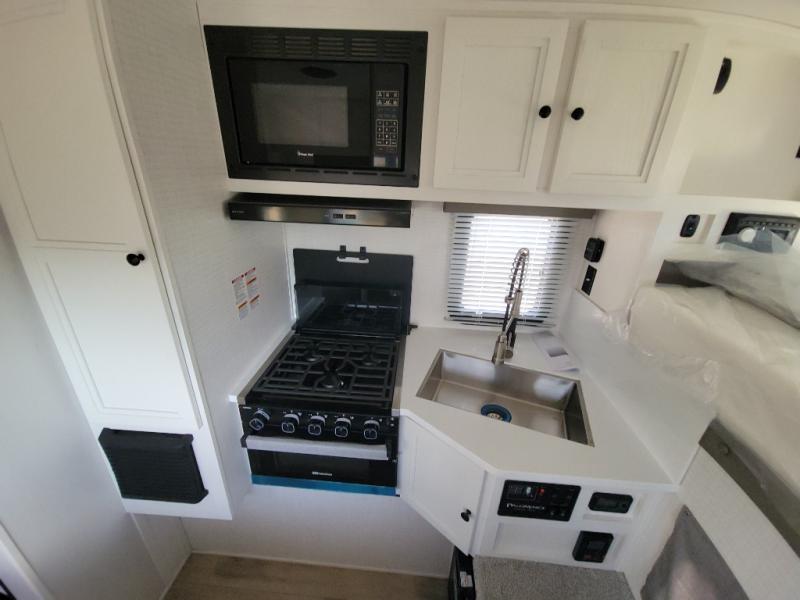 Each Backpack Edition truck camper by Palomino is constructed with high-density block foam insulation, an alpha super flex membrane roof, and Azdel substrate for added durability. You will also love the white or grey hi-gloss exterior fiberglass that is eye-catching and easy to keep clean. Inside, you'll find white cabinets, LED lighting, and more comforts. If you'd like to further customize your camper, consider choosing the optional roof rack, dually bracket, entry step, or optional air conditioning!