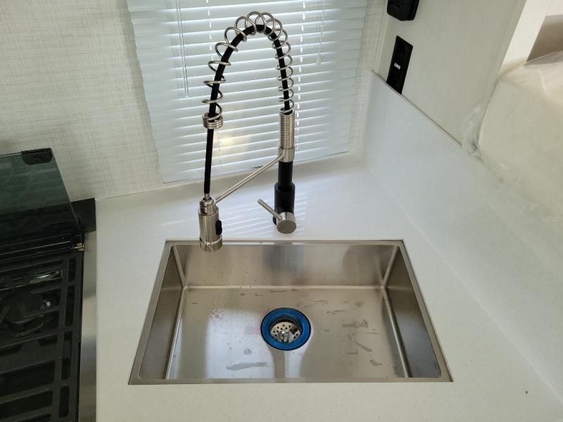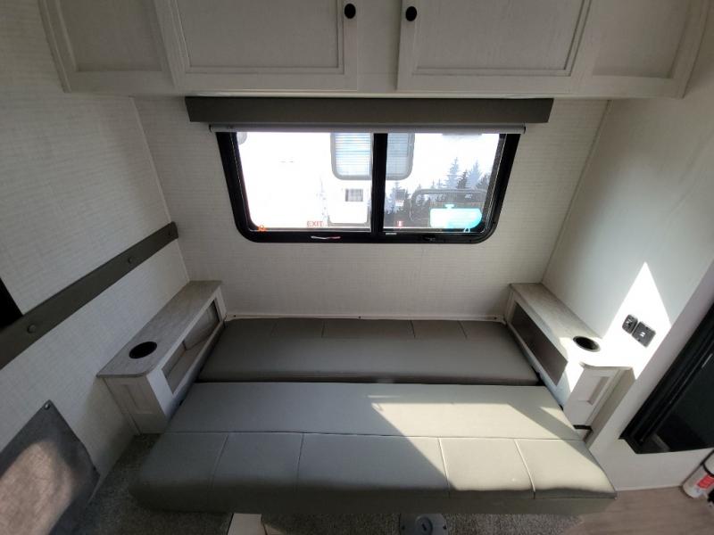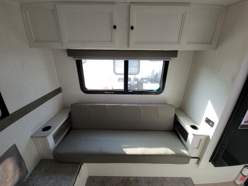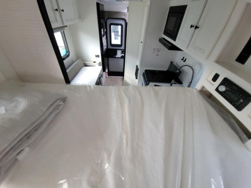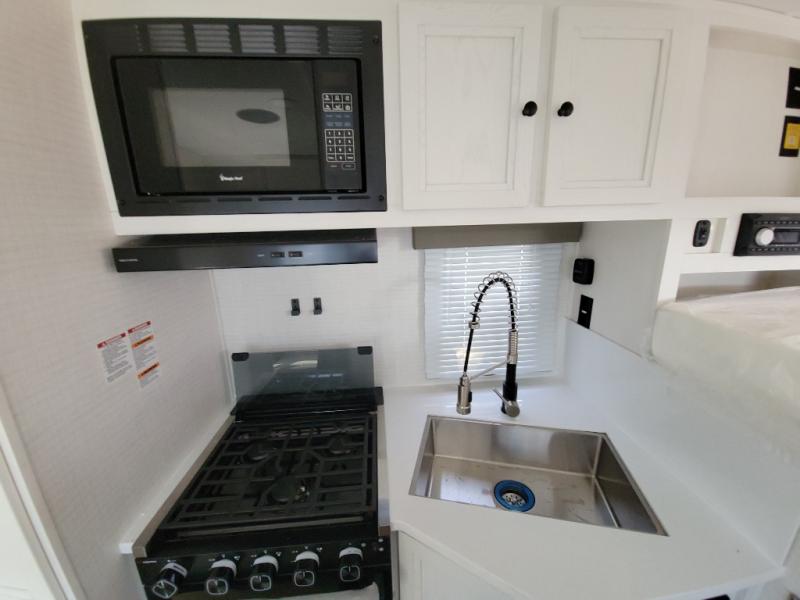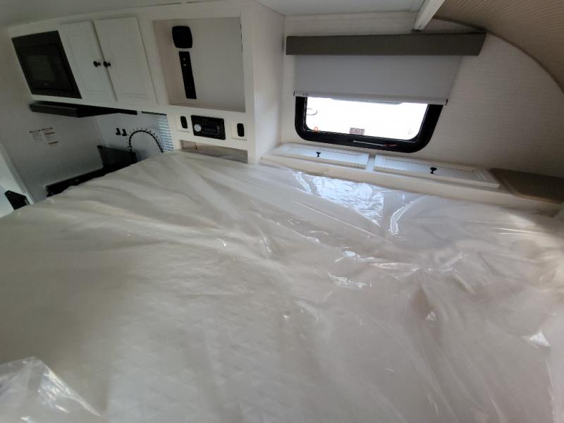 Pick your favorite fishing spot and load up this hard side truck camper! You can fry your catch of the day on the cooktop and enjoy a cold beverage from the refrigerator while you cook it. The 60" jackknife sofa offers a comfortable place for an afternoon nap or for an extra guest to sleep at night while you sleep on the front queen bed which has a wrap around nightstand, storage chests on either side, and a closet to keep your clothes wrinkle-free. If you're needing more sleeping space, you might consider adding the optional Euro bunk above the sofa!