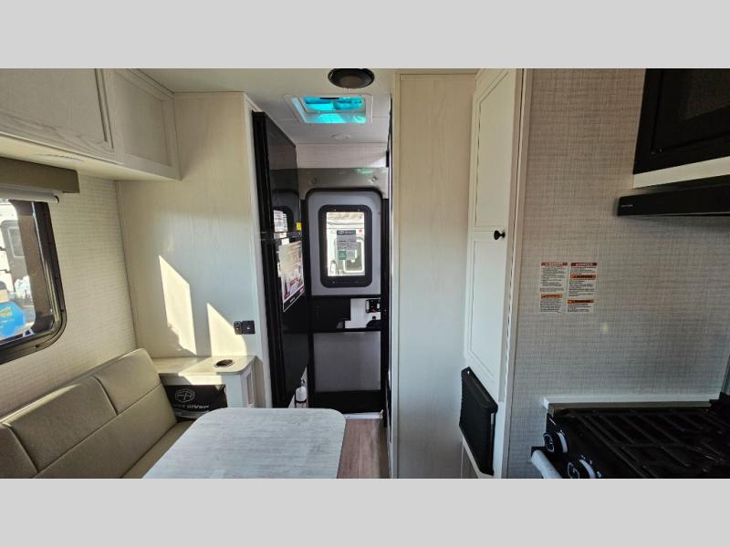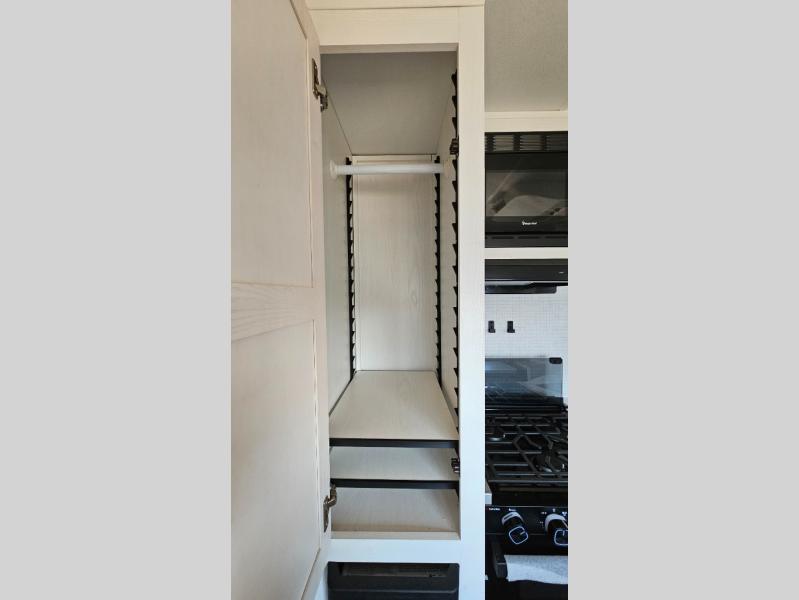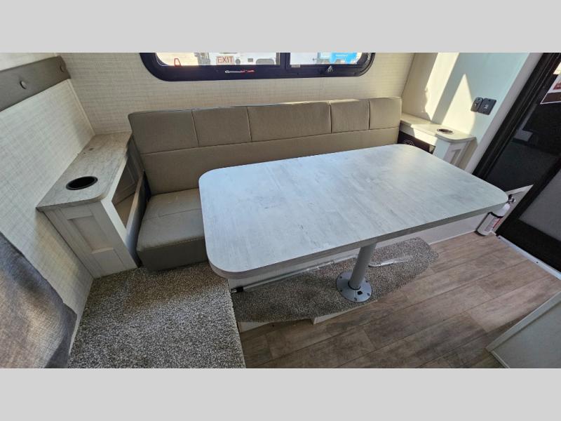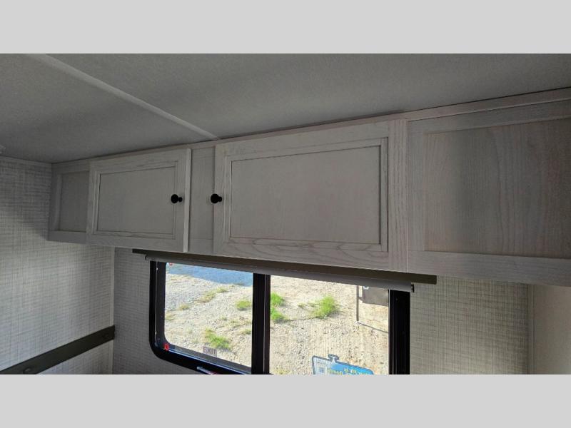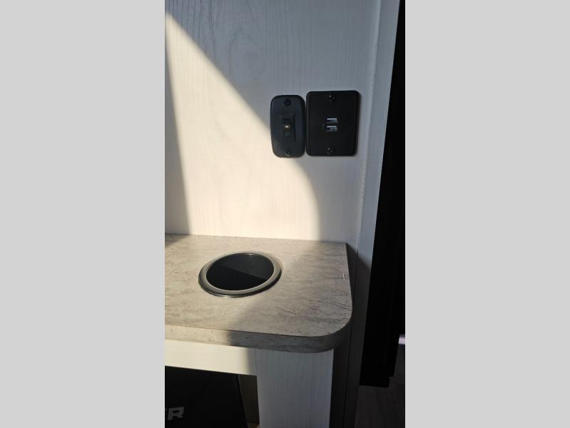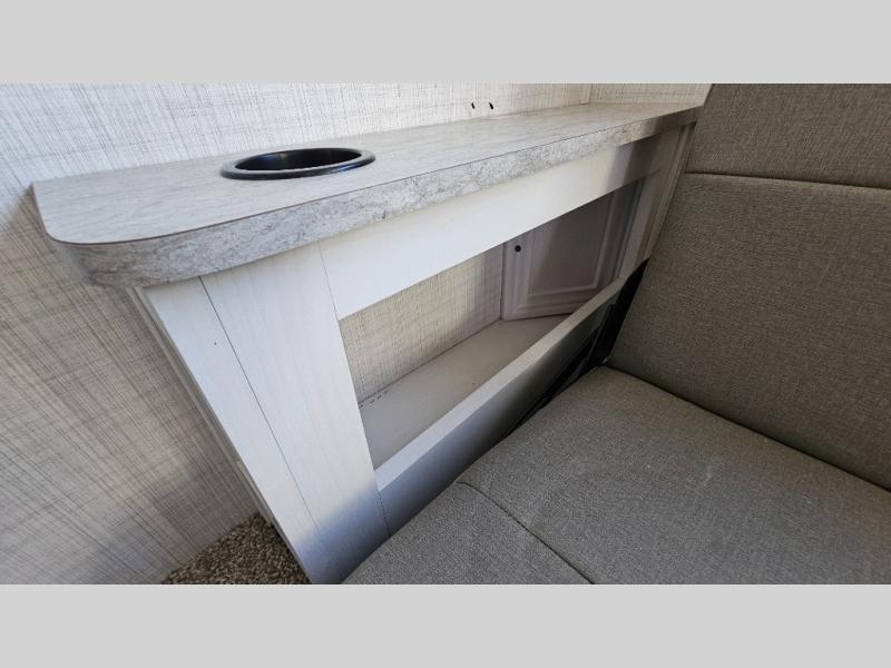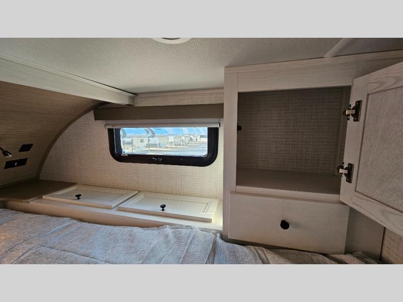 Pick your favorite fishing spot and load up this hard side truck camper! You can fry your catch of the day on the cooktop and enjoy a cold beverage from the refrigerator while you cook it. The 60" jackknife sofa offers a comfortable place for an afternoon nap or for an extra guest to sleep at night while you sleep on the front queen bed which has a wrap around nightstand, storage chests on either side, and a closet to keep your clothes wrinkle-free. If you're needing more sleeping space, you might consider adding the optional Euro bunk above the sofa!
