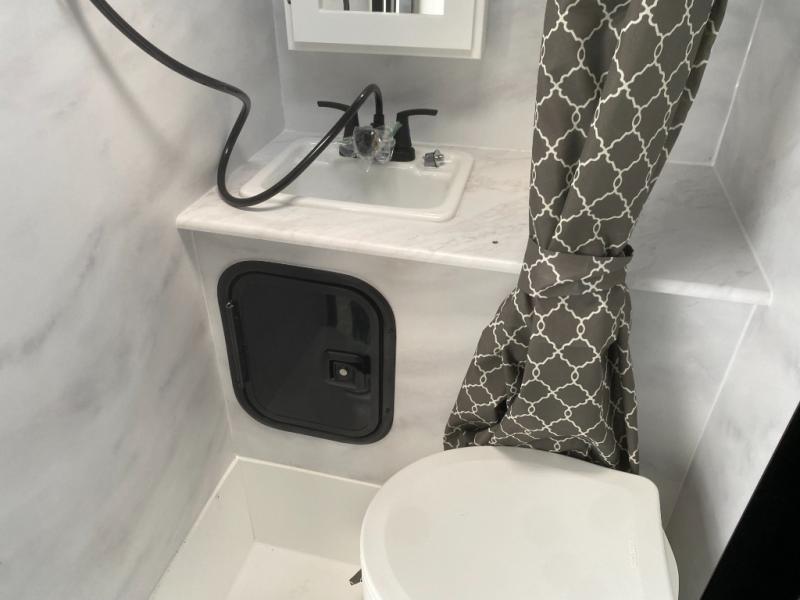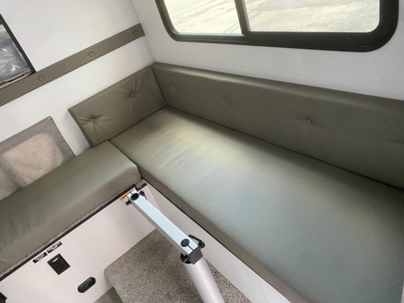 Pick your favorite fishing spot and load up this hard side truck camper! You can fry your catch of the day on the cooktop and enjoy a cold beverage from the refrigerator while you cook it. The 60" jackknife sofa offers a comfortable place for an afternoon nap or for an extra guest to sleep at night while you sleep on the front queen bed which has a wrap around nightstand, storage chests on either side, and a closet to keep your clothes wrinkle-free. If you're needing more sleeping space, you might consider adding the optional Euro bunk above the sofa!