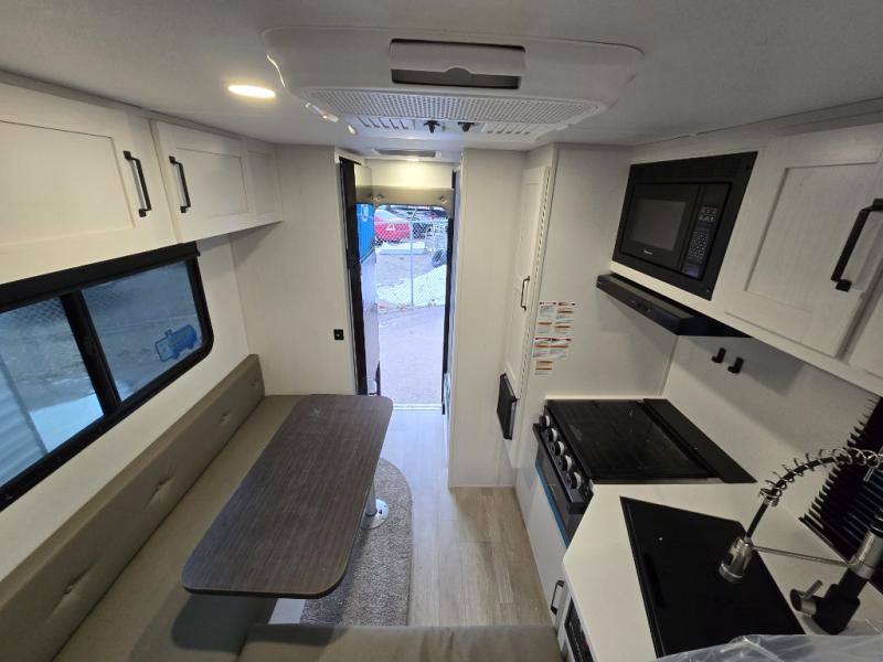 Pick your favorite fishing spot and load up this hard side truck camper! You can fry your catch of the day on the cooktop and enjoy a cold beverage from the refrigerator while you cook it. The 60" jackknife sofa offers a comfortable place for an afternoon nap or for an extra guest to sleep at night while you sleep on the front queen bed which has a wrap around nightstand, storage chests on either side, and a closet to keep your clothes wrinkle-free. If you're needing more sleeping space, you might consider adding the optional Euro bunk above the sofa!