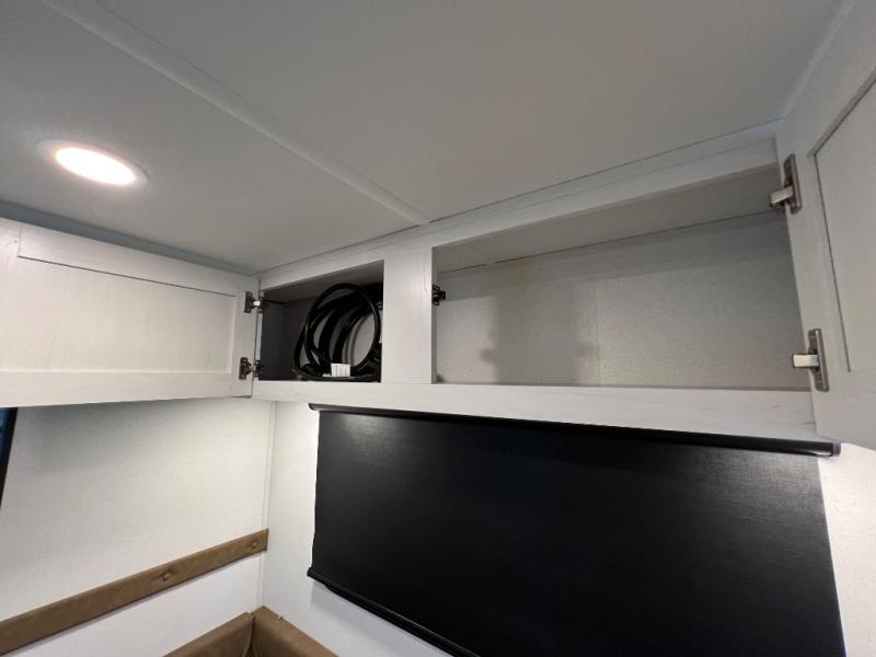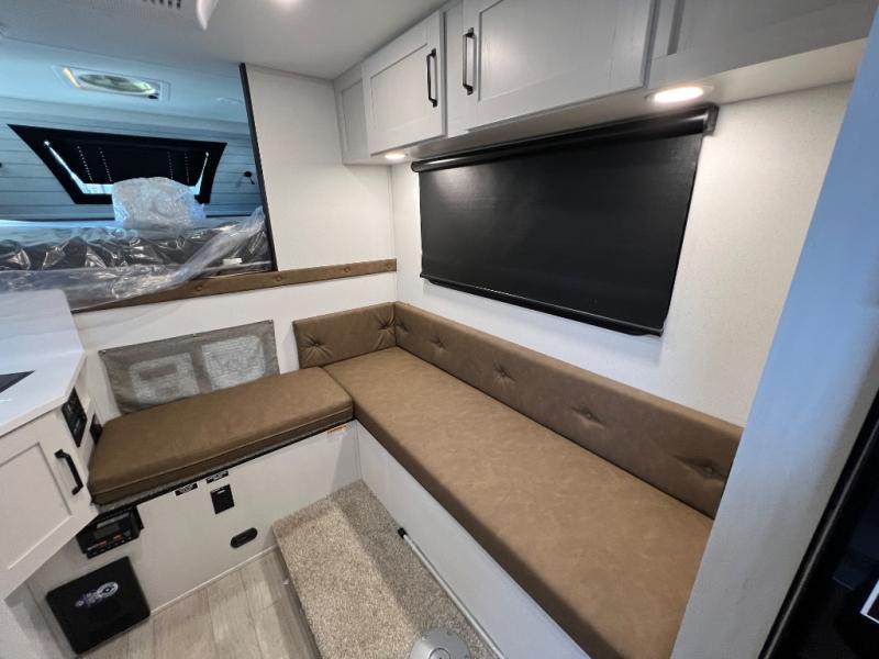 Pick your favorite fishing spot and load up this hard side truck camper! You can fry your catch of the day on the cooktop and enjoy a cold beverage from the refrigerator while you cook it. The 60" jackknife sofa offers a comfortable place for an afternoon nap or for an extra guest to sleep at night while you sleep on the front queen bed which has a wrap around nightstand, storage chests on either side, and a closet to keep your clothes wrinkle-free. If you're needing more sleeping space, you might consider adding the optional Euro bunk above the sofa!