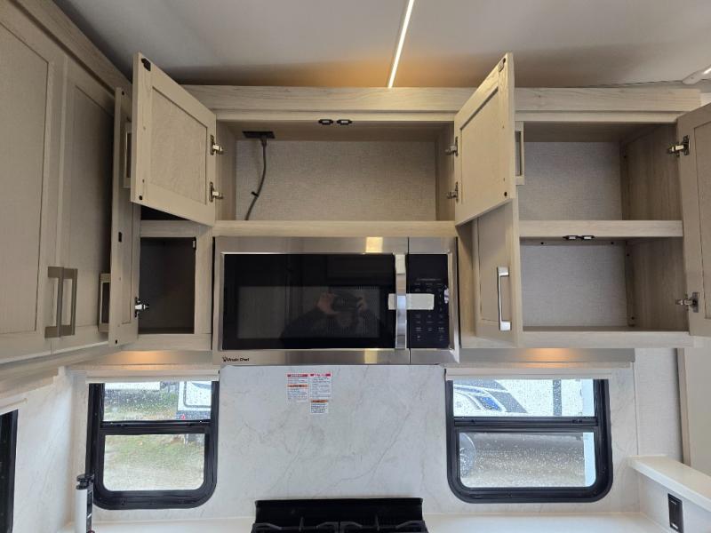 Experience a different camping life with residential furnishings and high end features in each one of these Palomino Columbus fifth wheels! The 101" wide body lets you walk around more throughout and the all-welded aluminum-frame superstructure has a snap-in ceiling molding to hold up through every adventure. Don't leave any of your gear behind either when you can easily store it in the climate controlled drop frame storage area. On the exterior, you'll find a heated utility convenience center, an outside sprayer to keep the dirt outside where it belongs, and magnetic compartment door holds to keep them from falling on you as you grab your items. Plus, there are some modern features that will really seal the deal like the Wi-Fi Booster with 4G LTE capability prep, upgraded true solid-surface countertops, power theater seating with USB charging, and a 260W solar panel for off-grid camping!